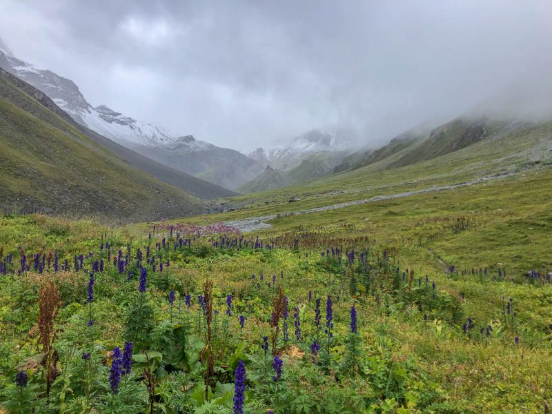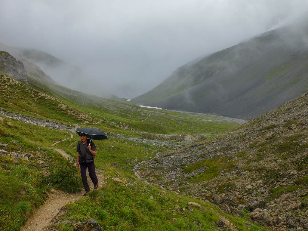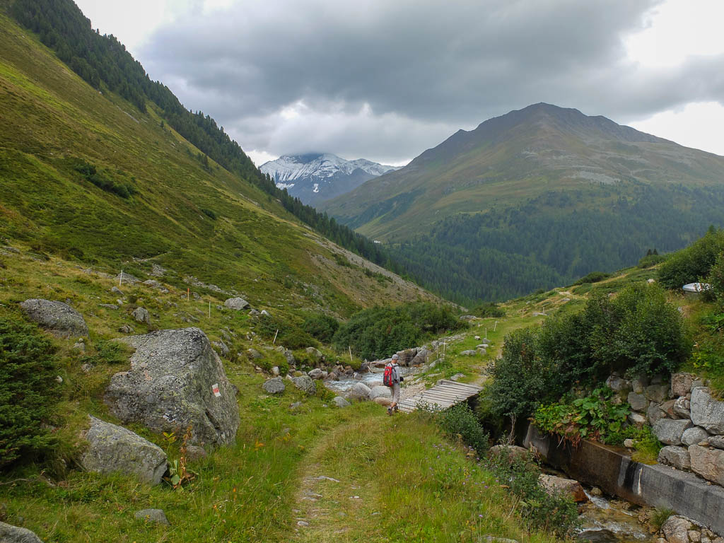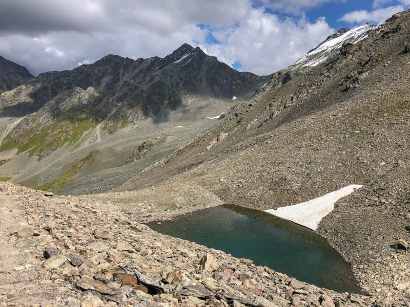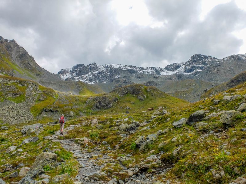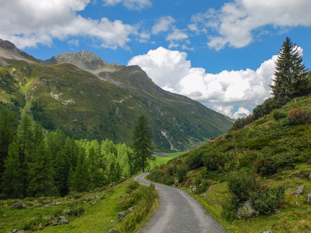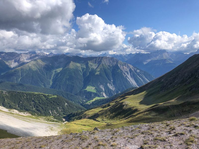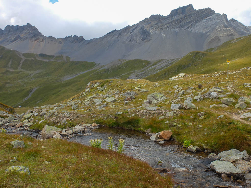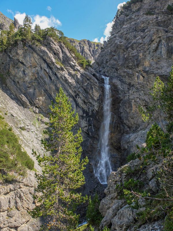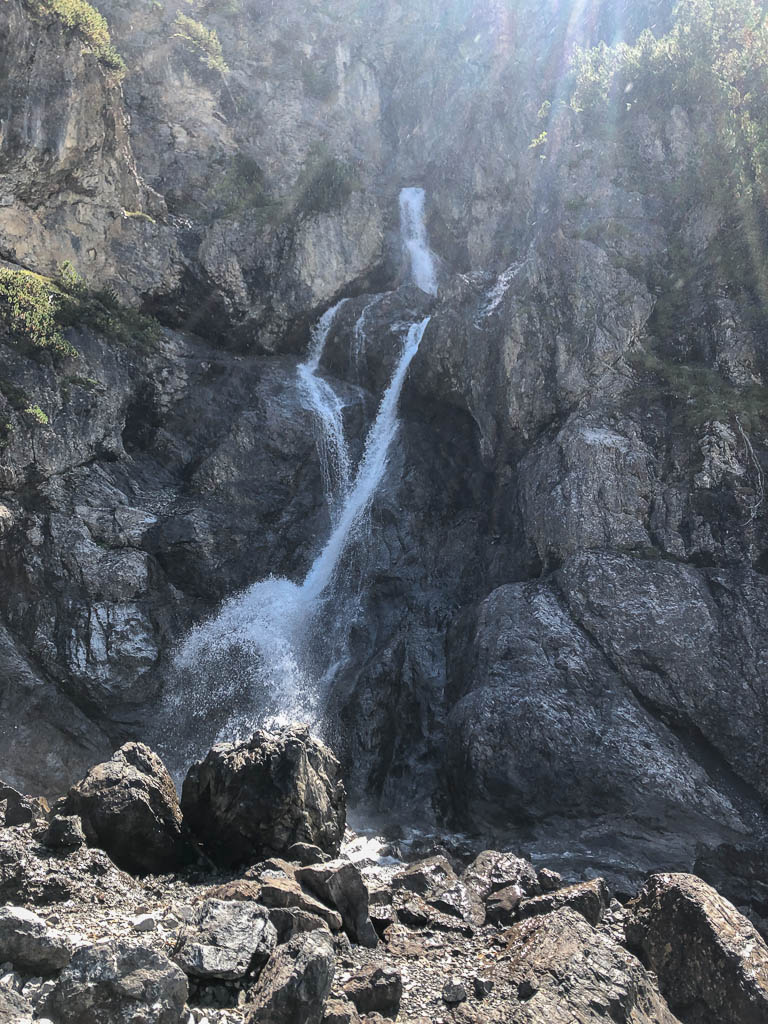 Das letzte Grün am oberen Ende des Schaftobels, bevor das Gelände nur noch aus Geröll besteht: