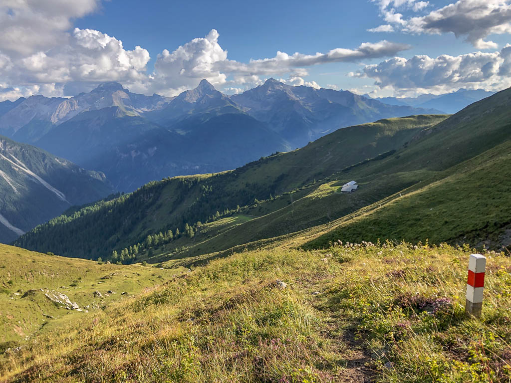 Im Nordwesten liegt die Ramozhütte und das hinter ihr liegende Erzhorn:
