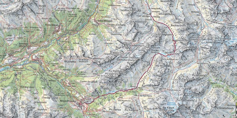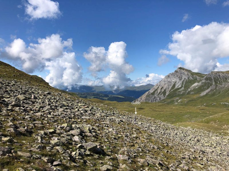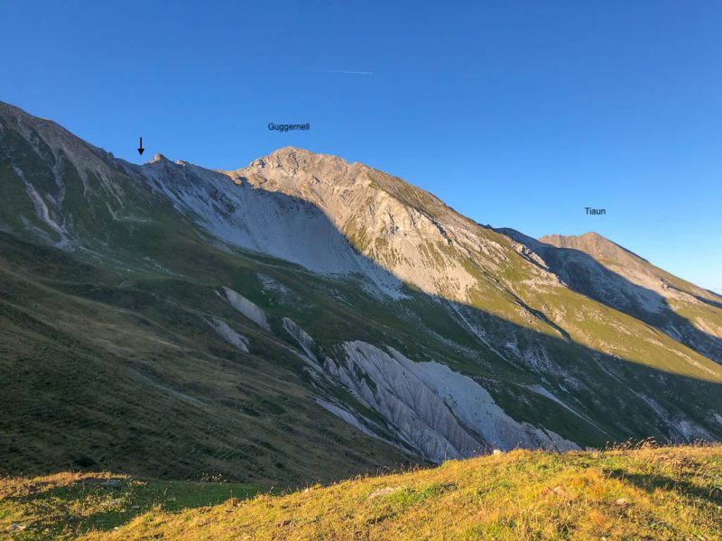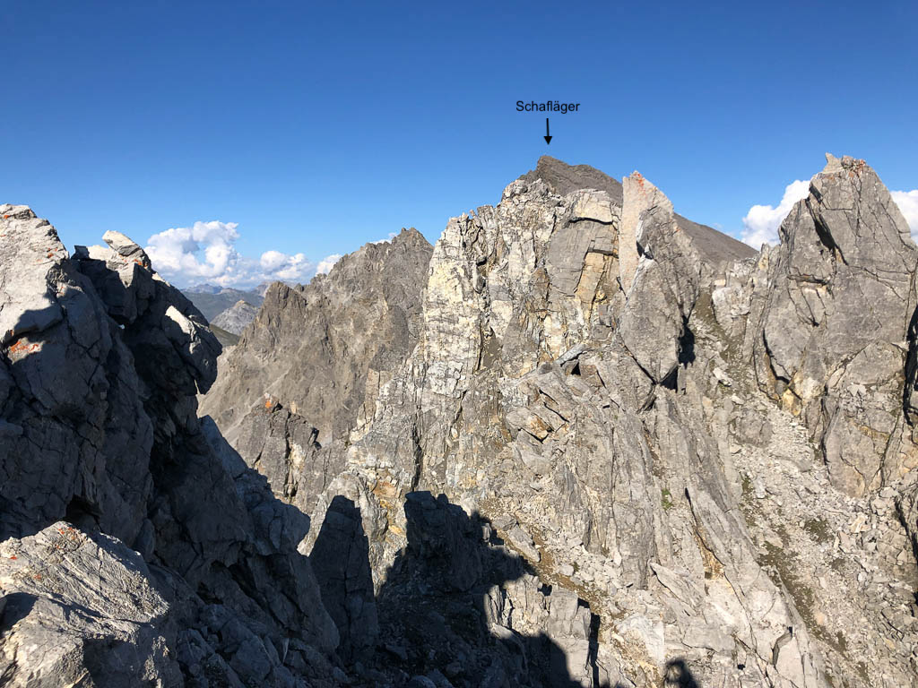 In der entgegengesetzten Richtung ragt der Schafläger, auch Guggernellgrat genannt, da mit 2809 Metern die höchste Erhebung des Guggernellgrats, empor: