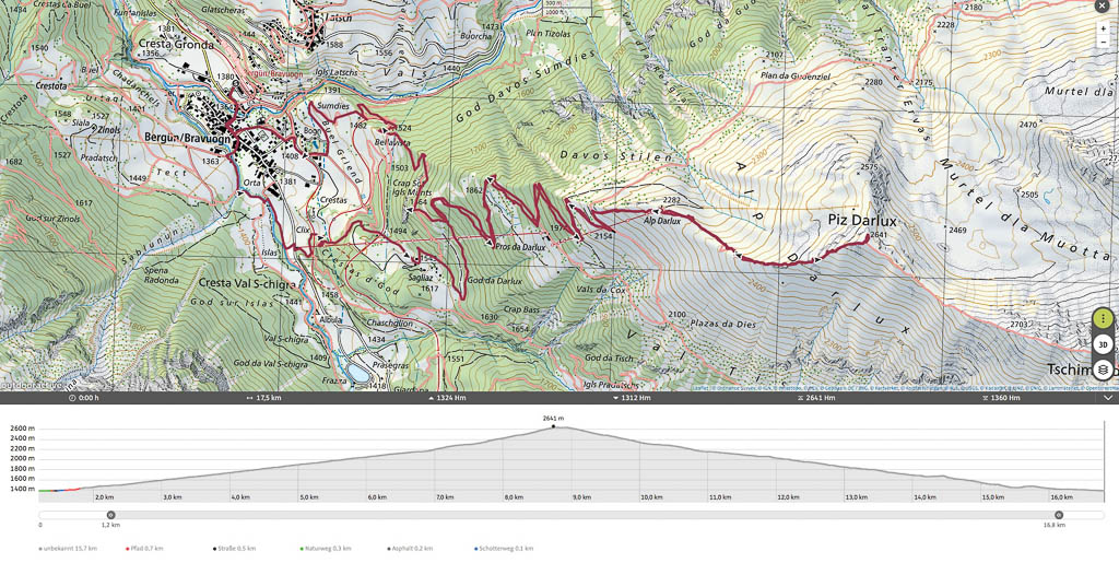 Um 17.30 Uhr, fünfeinhalb Stunden nach Beginn unserer Wanderung, erreichen wir Bergün: