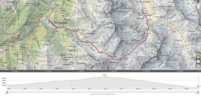 Kurze Zeit nach dieser Aufnahme versinkt die Sonne hinter dem Lenzer Horn und obwohl wir recht flott unterwegs sind, erreichen wir erst nach Einbruch der Dunkelheit unser Zuhause. Aber ab der Alp da la Creusch sind uns die Wege zurück nach Hause ja bestens bekannt, da stört es nicht, wenn es dunkel ist. Im Gegenteil, es ist ein heimeliges Gefühl, im Dunklen nach Hause zu kommen.
