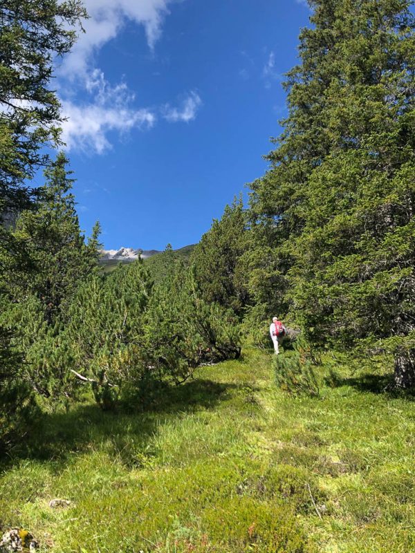 Wir machen uns den heutigen Aufstieg durch den Schaftobel etwas leichter als beim letzten Mal und steigen über einen von Raglauna zum Schaftobel führenden Jägersteig, der durch ein Waldstück namens“Gebrenst“ führt, auf: