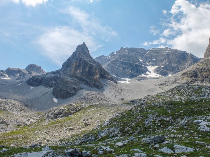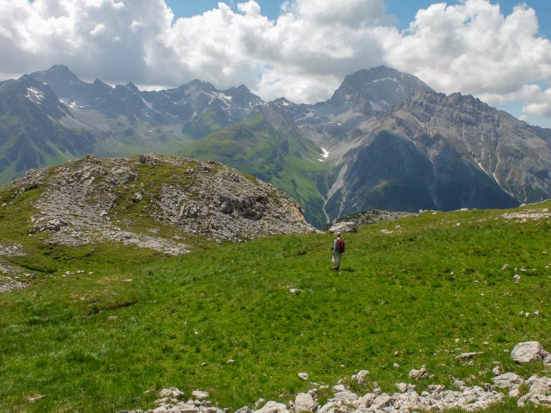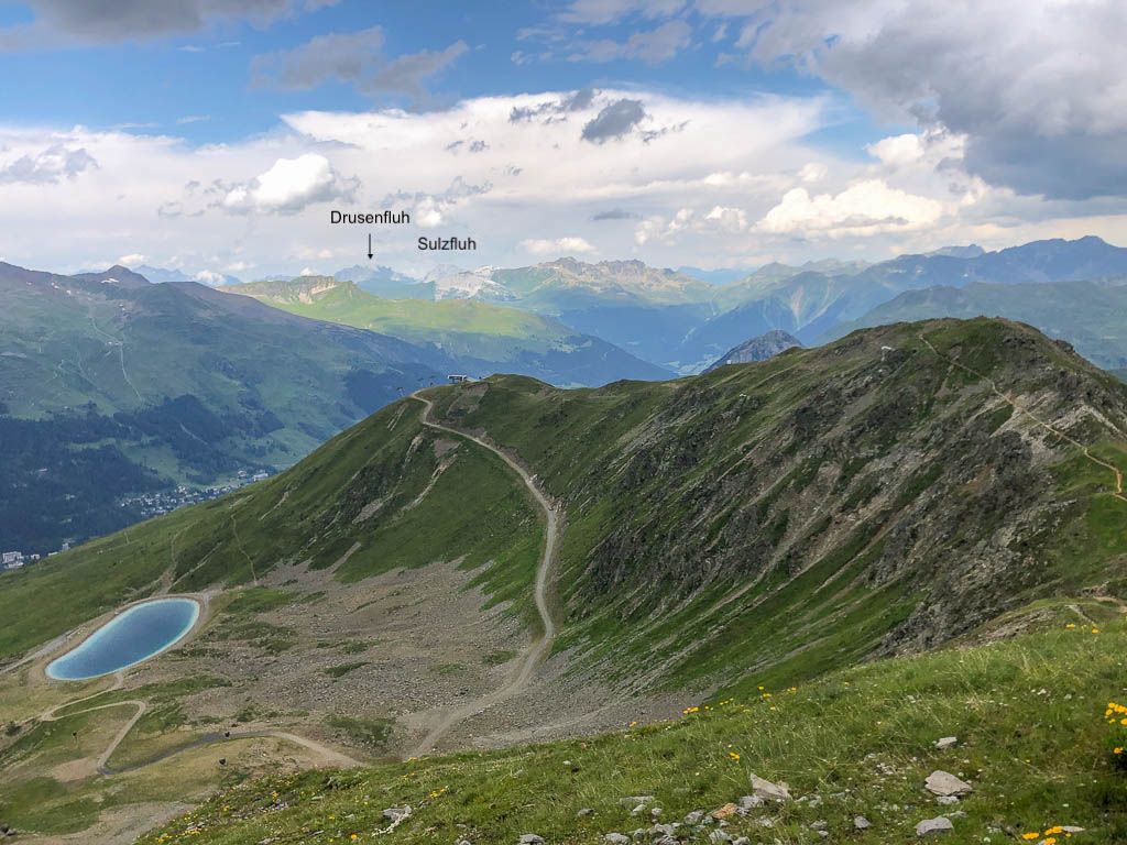 Richtung Norden entdecken wir Drusen- und Sulzfluh, Grenzberge zwischen Schweiz und Österreich: