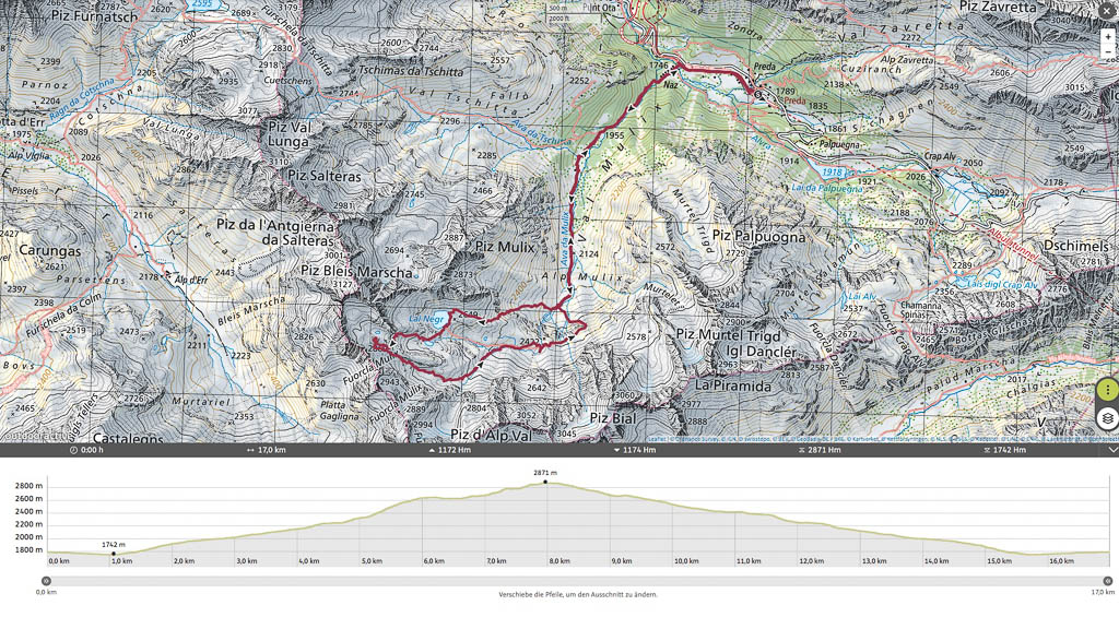 Der Rest des Abstiegs ist dann ein Kinderspiel, es geht bequem über den Wanderweg zurück nach Preda: