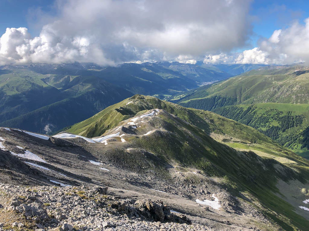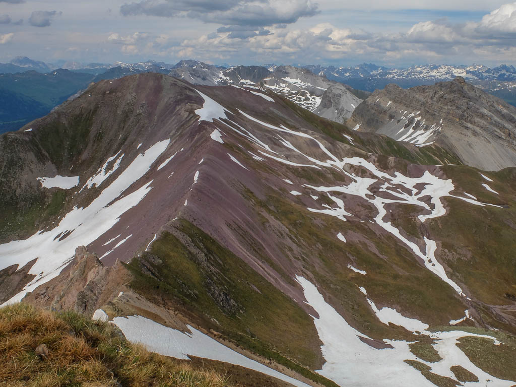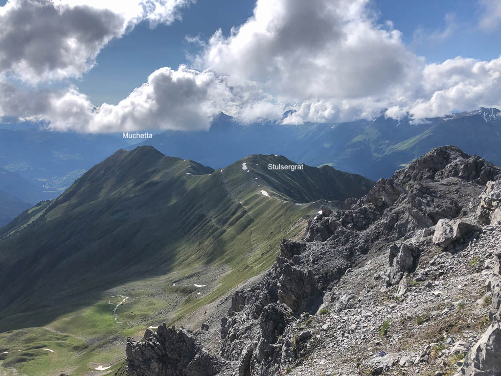 Der Blick vom Gipfel Richtung Westen zum Muchetta: