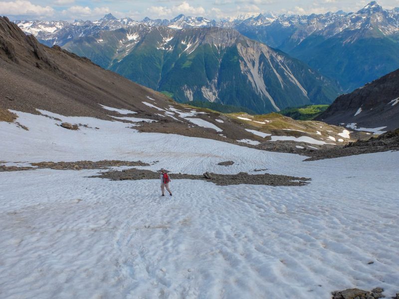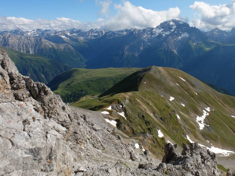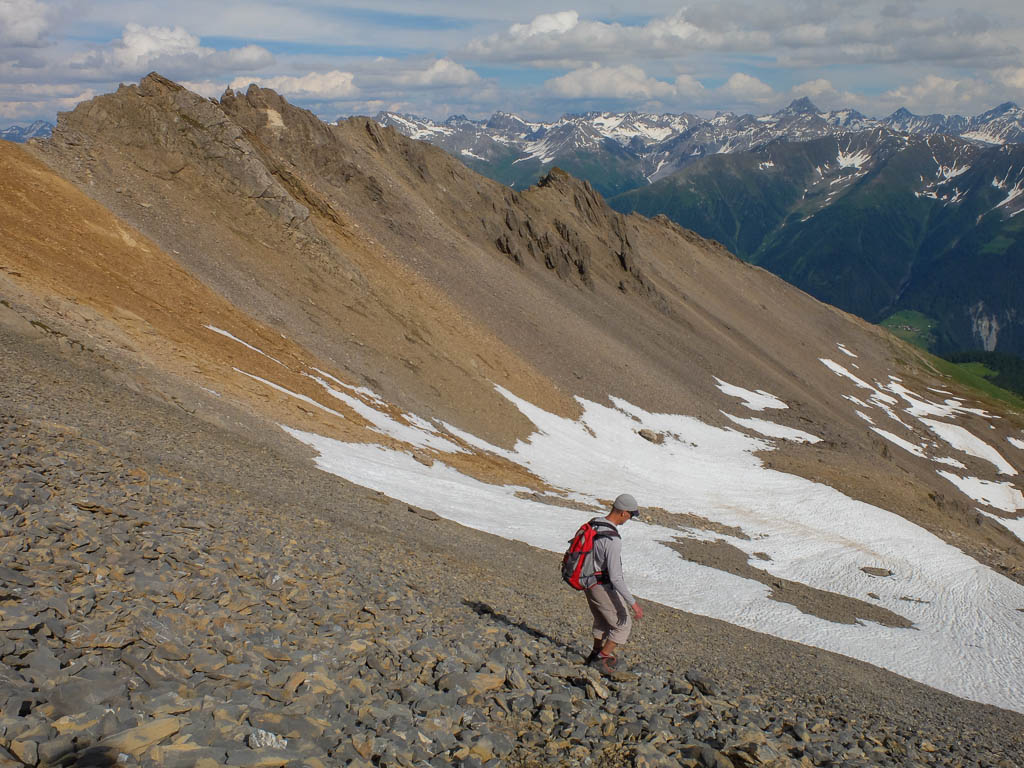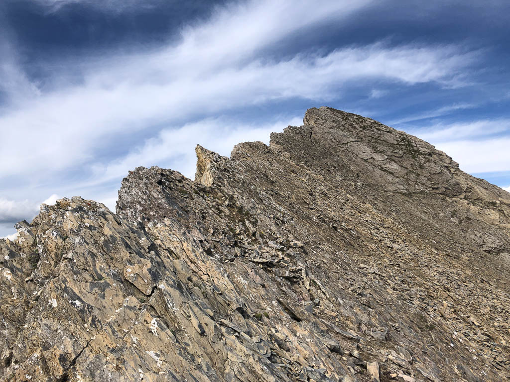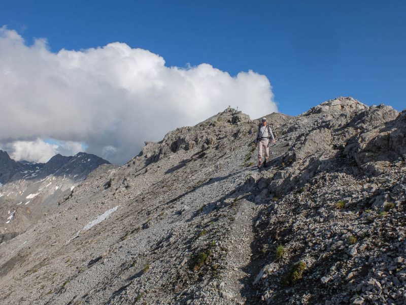 Während des Abstiegs liegt anfangs der Mäschengrat in seiner ganzen Pracht vor unseren Augen: