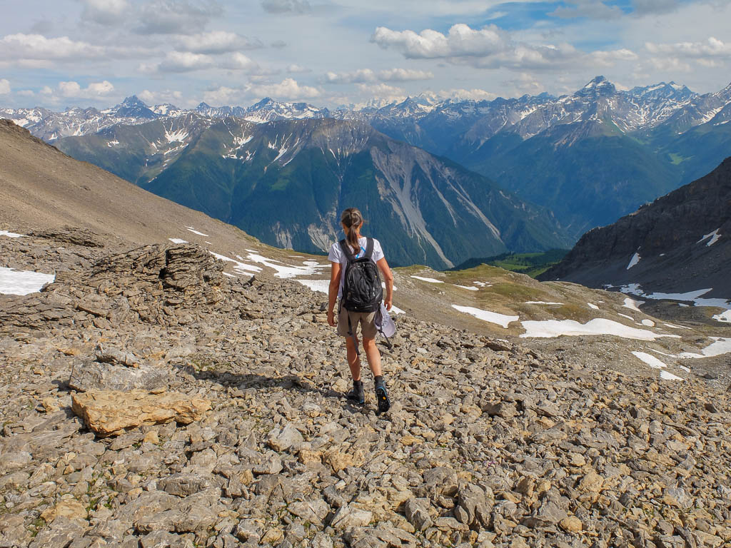 Nach einer rund zwanzigminütigen Gipfelrast geht es auf unserem Aufstiegsweg wieder hinunter Richtung Tal: