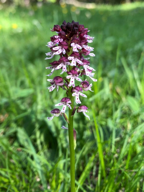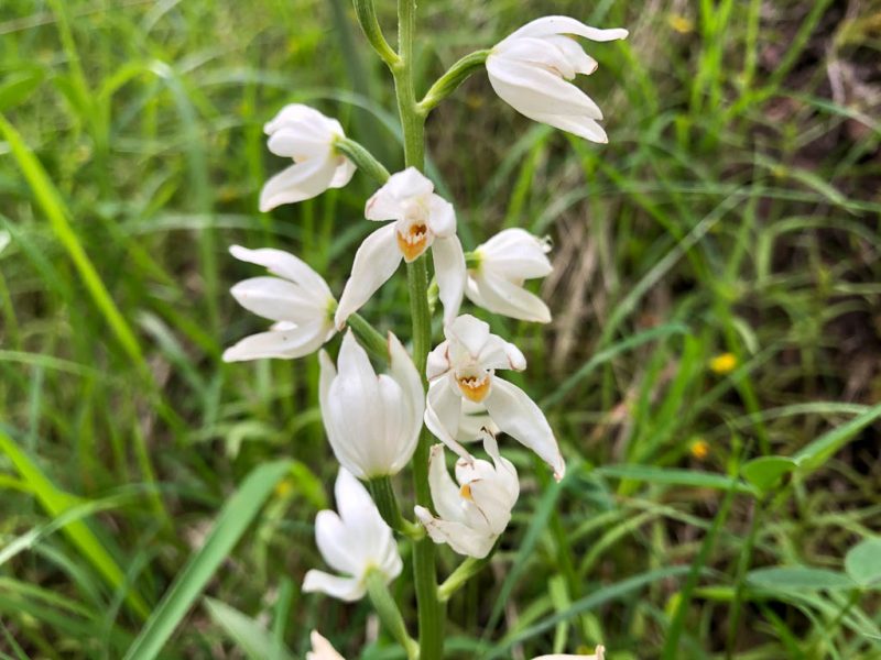 Auf dem Weg zurück nach Hause begegnen uns weitere Orchideen: Das Fuchs‘ Knabenkraut habe ich schon gestern verewigt, neu sind das Brand-Knabenkraut und das Langblättrige Waldvögelein: