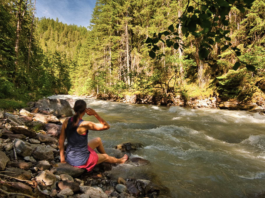 Bei Wiseli gönne ich mir den Luxus eines Fußbades im Schmittenerbach: