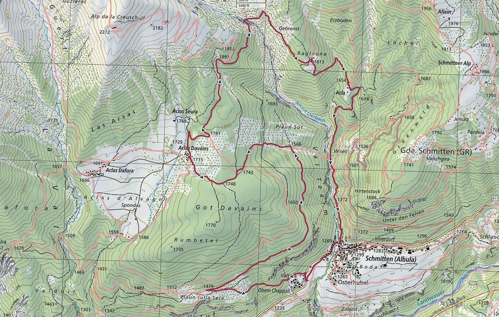 PPS: Guidos Tourenbericht: Rundwanderung Schmitten → Aclas Davains.