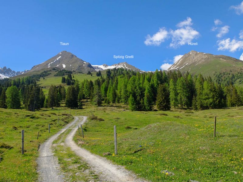 Unsere über 12 Kilometer und knapp 700 Höhenmeter gehende Wanderung führt über Aclas Davains, Raglauna und Wiseli: