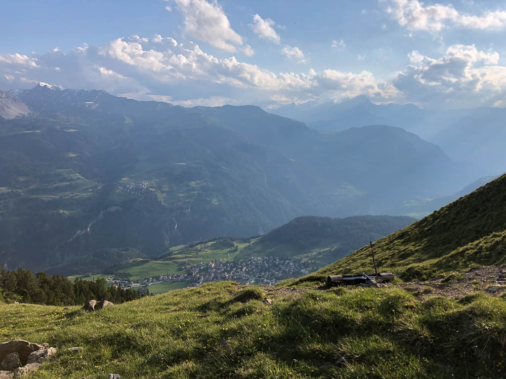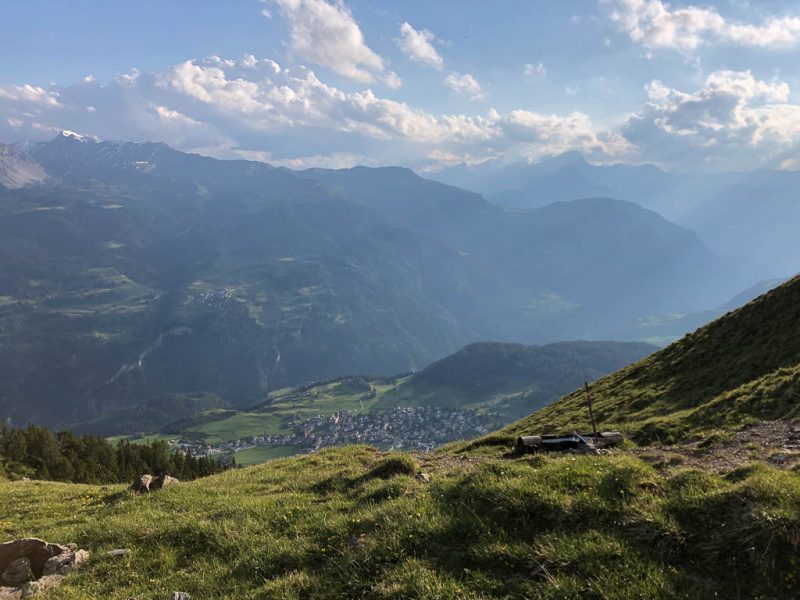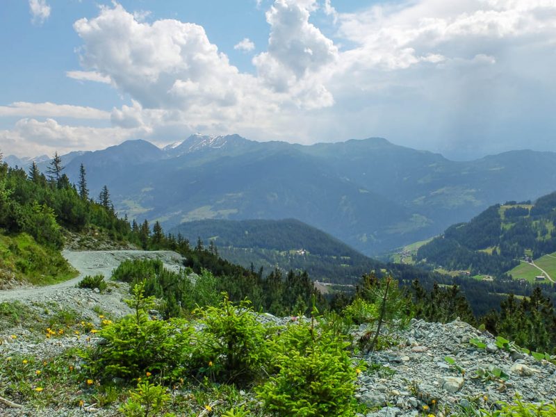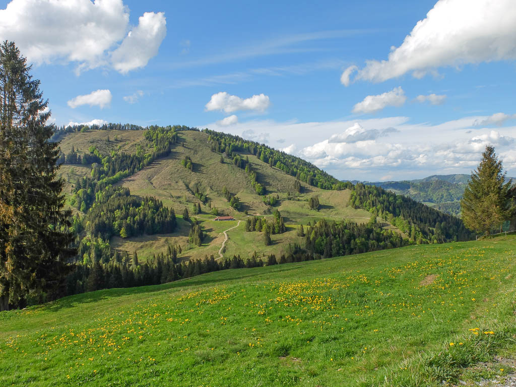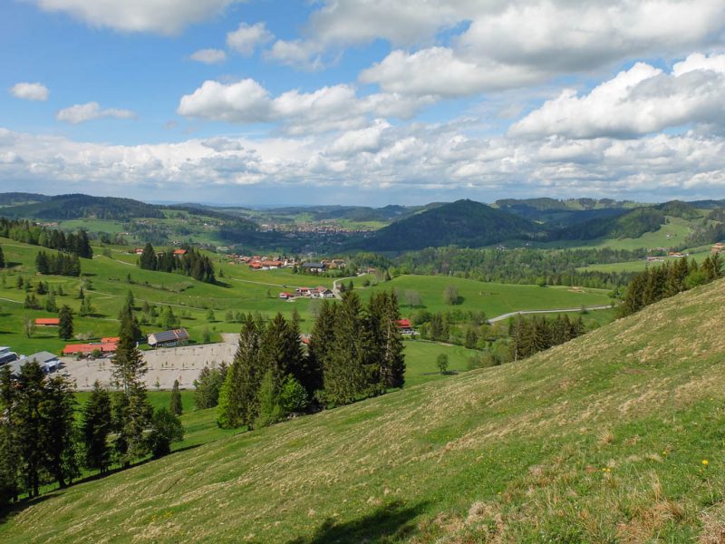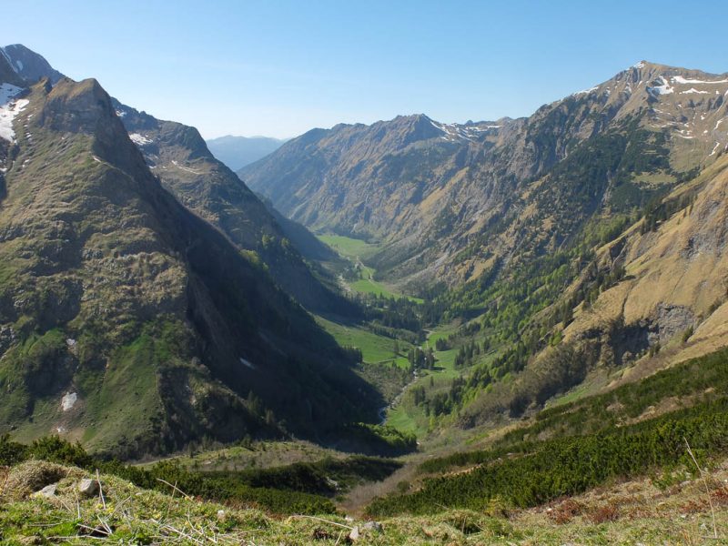 Der Blick von den Weiden der Wildenfeld-Hütte hinunter ins Oytal: