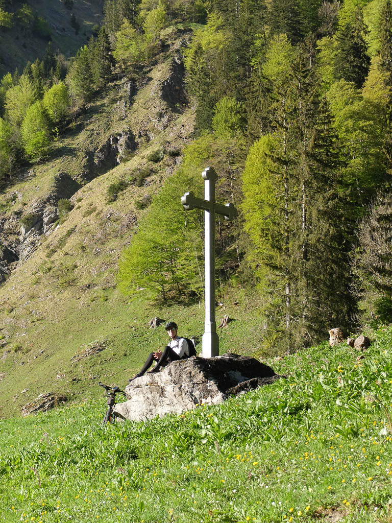 Am Prinzenkreuz, das am Ende beziehungsweise Anfang des Oytals steht, wartet Guido nach seiner rasanten Abfahrt auf mich: