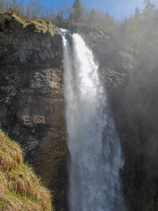 Nach 7,5 Kilometern beginnt der steile Anstieg zur Käser-Alpe. Hier bin ich froh, zu Fuß unterwegs zu sein und nicht mit dem Rad. Der unterhalb der Käser-Alpe liegende Stuibenfall: