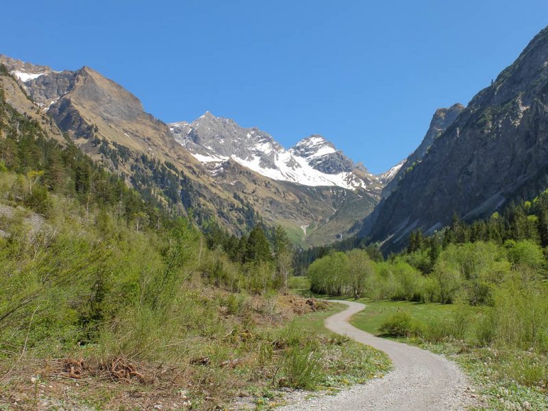 Gestern wurden deutschlandweit die Ausgangsbeschränkungen aufgehoben. Guido und ich nutzen die Gunst der Stunde und fahren mit dem Auto sowie Guidos Fahrrad im Kofferraum nach Oberstdorf. Dort will ich ein E-Mountainbike ausleihen und dann wollen wir durchs Oytal hinauf zur Käser-Alpe radeln.