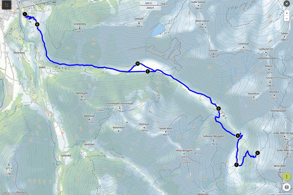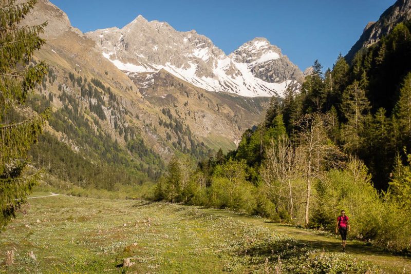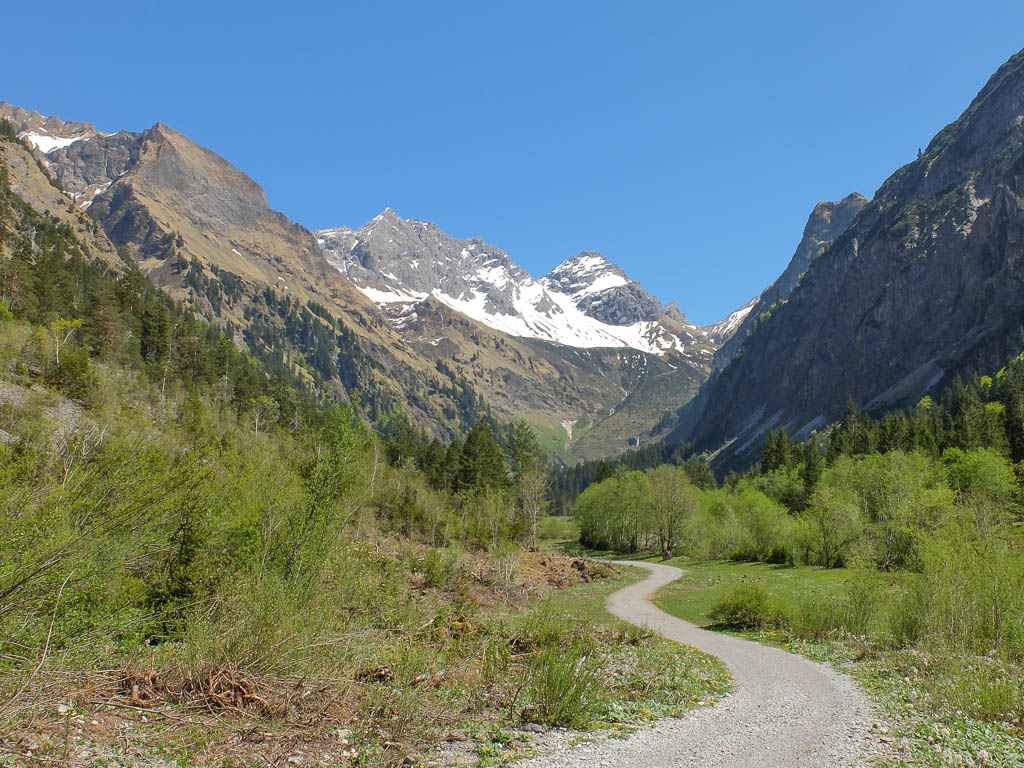 Hinter dem Oytal-Haus geht es mit Blick auf den Großen und Kleinen Wilder weiter: