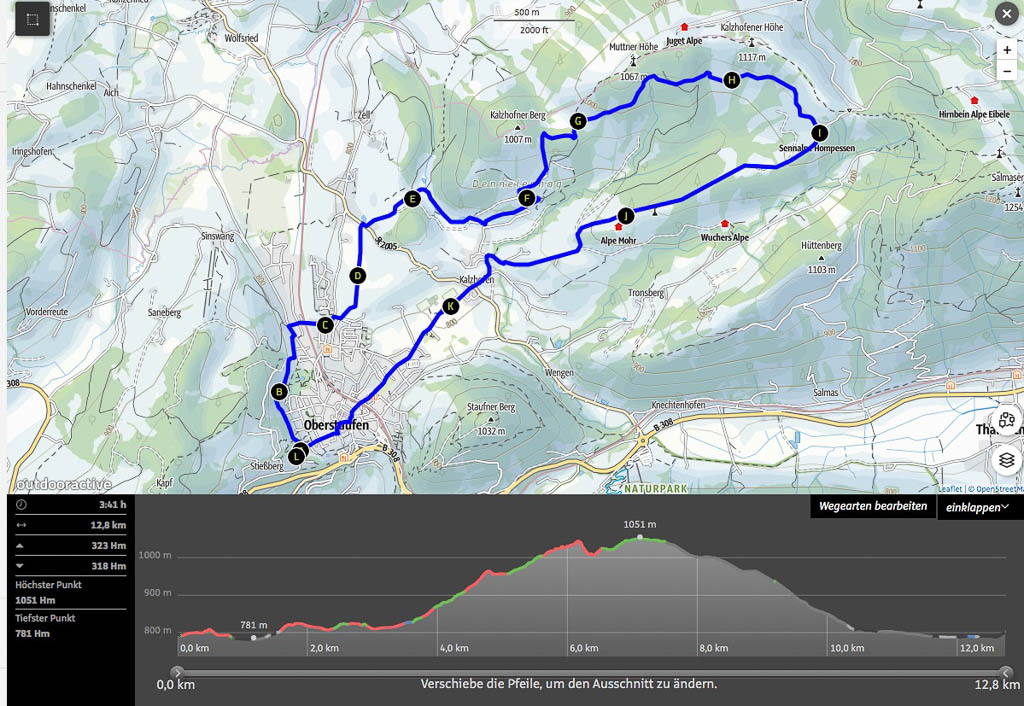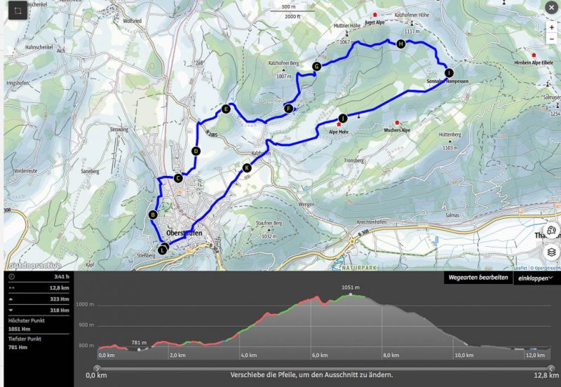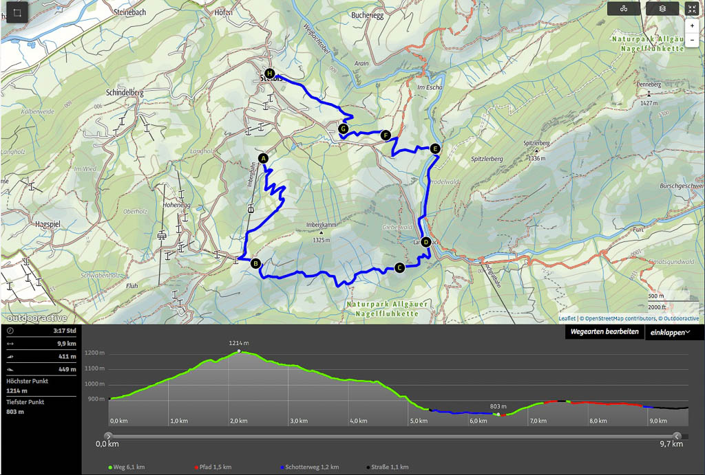 Unsere Wanderung, für die wir vier Stunden und zehn Minuten benötigen, in der Übersicht: