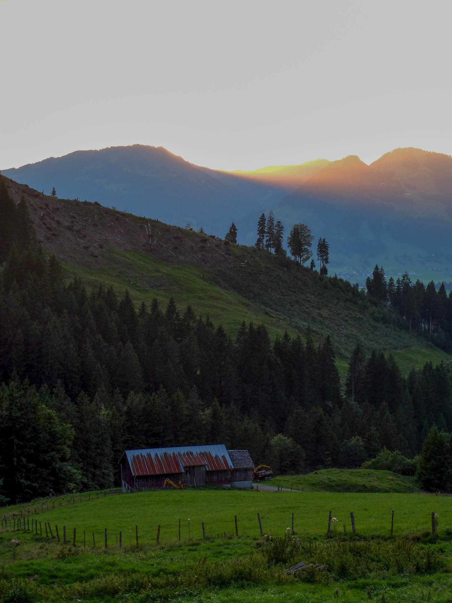 Beim Erreichen der Richter-Alpe um 19.15 Uhr wurde es langsam aber sicher dunkel. Die Stirnlampen blieben trotzdem eingepackt, eine Wanderung über dunkle Pfade hatte unserer Meinung nach ihre eigenen, ganz besonderen Reize!