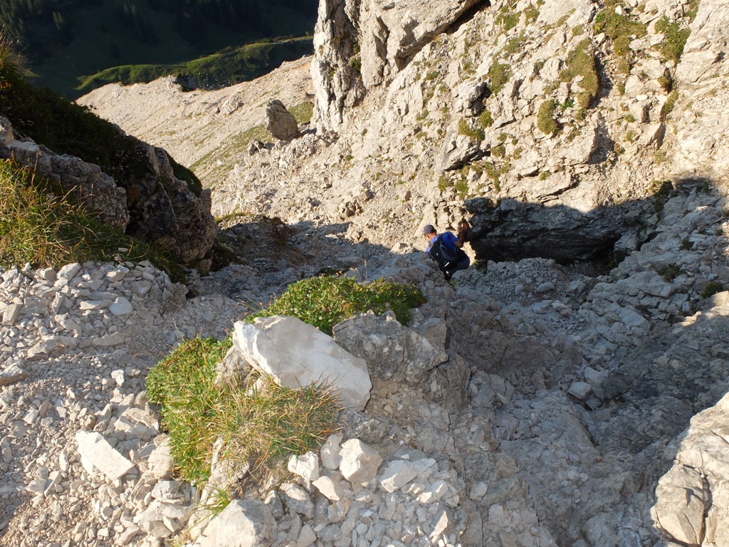 Die Bilder sagten sicherlich mehr als viele Worte. So viel aber noch zur Ergänzung: Einige ungesicherte Stellen hatten es wirklich in sich. Nicht, dass sie besonders schwierig waren, aber ein Fehltritt konnte hier fatale Folgen haben. So gesehen hätte man sich die ganze Ausrüstung auch sparen können. In der Tat kamen uns auf der Strecke zwei Männer, die beiden einzigen, die uns begegneten, ohne besondere Ausrüstung entgegen. Mir gab die Ausrüstung allerdings die notwendige innere Ruhe, die man gerade als Anfänger im Gebirge brauchte, um nicht in Panik zu geraten.