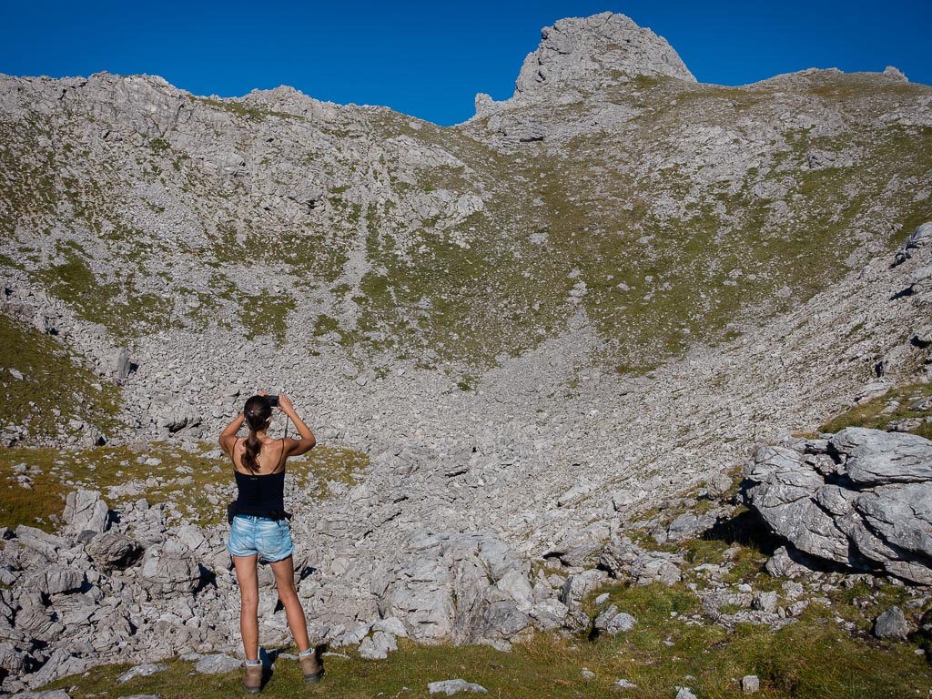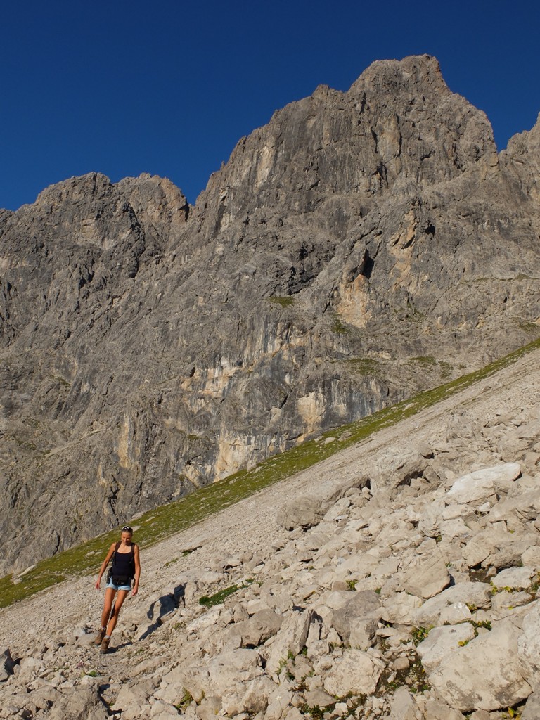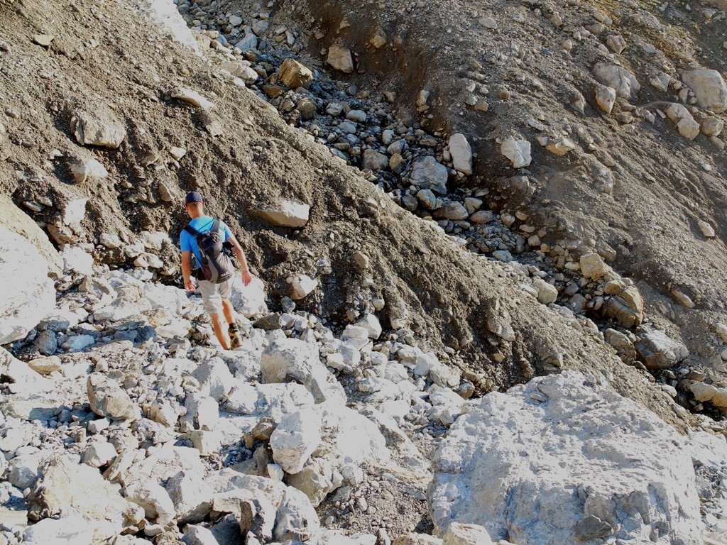Nach einer längeren Rast ging es an den Abstieg. Er führte zu Beginn über sehr steile Geröllpassagen: