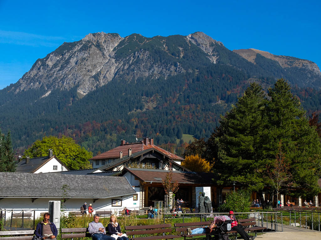 Bei der Besteigung des Entschenkopfs musste ich Ende Juni auf Grund mangelnder Kondition noch passen und Guido alleine gehen lassen. Aber heute wollten wir uns gemeinsam ins Gipfelbuch eintragen. Von der Station Höfatsblick aus ging es erst einmal gemächlich den Berg hinunter. Hier lag der Große Gund vor uns: