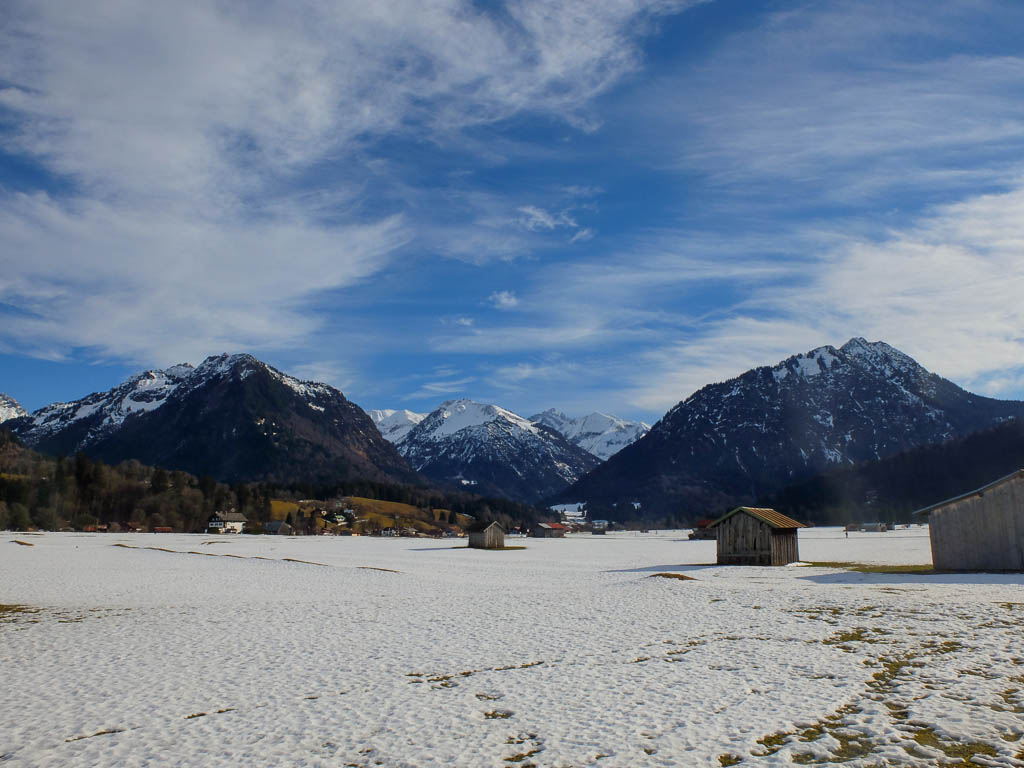 Die Aufnahmen von Freibergsee und Umgebung entstanden auf einer dreistündigen Wanderung nach dem Sonnenbad. Sie führte uns zu Beginn über die Wiesen von Oberstdorf: