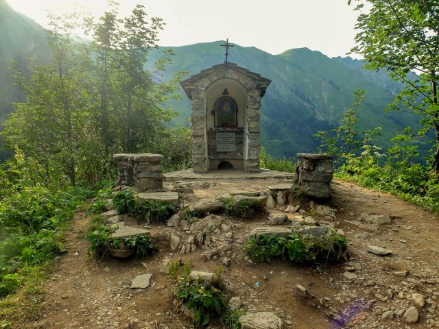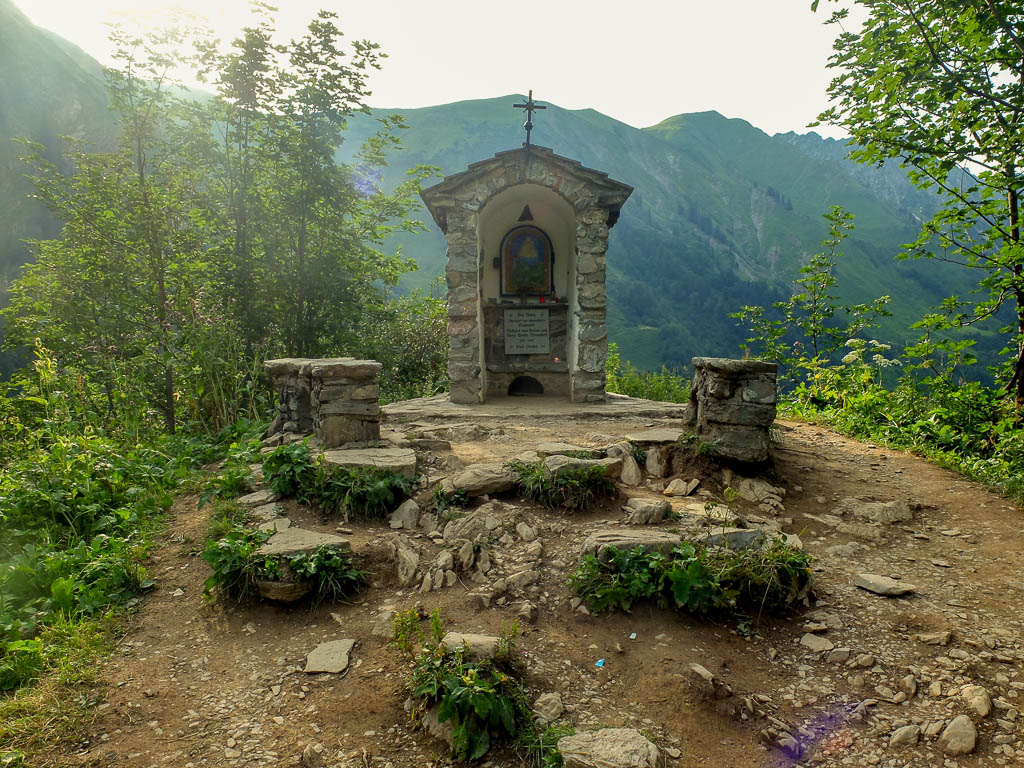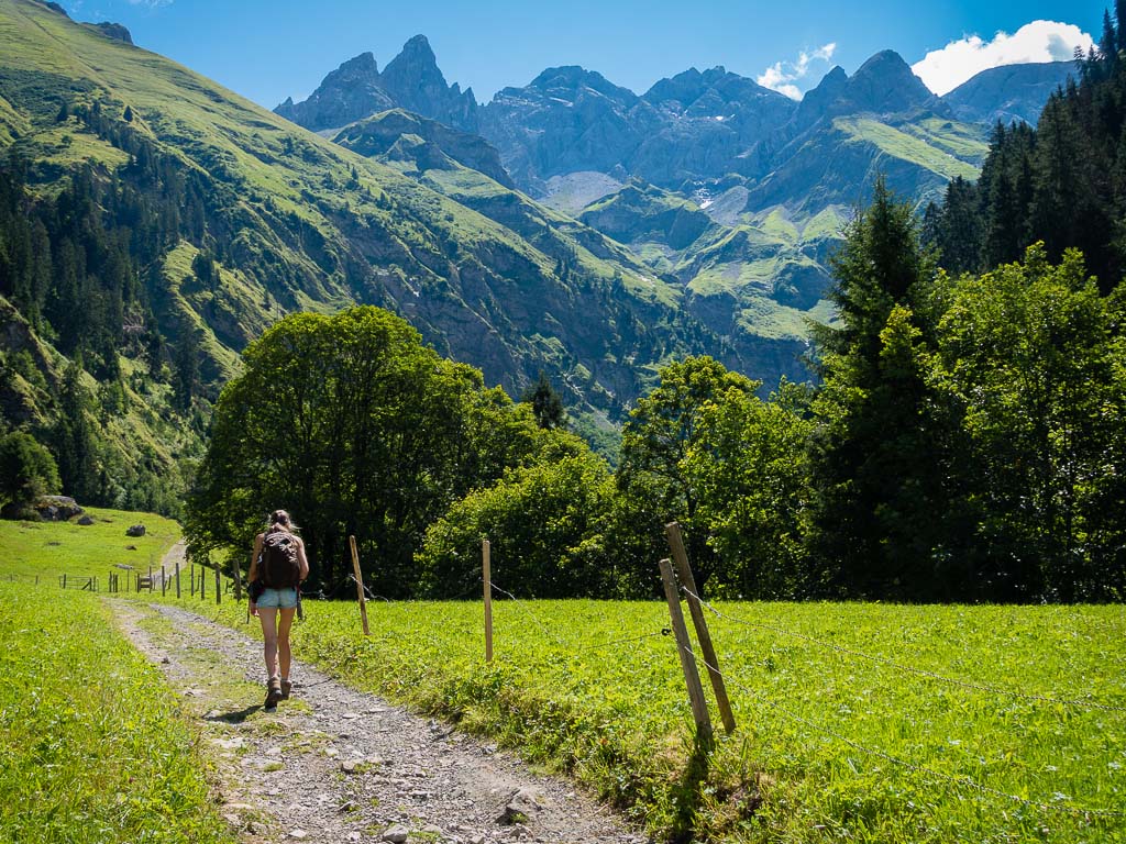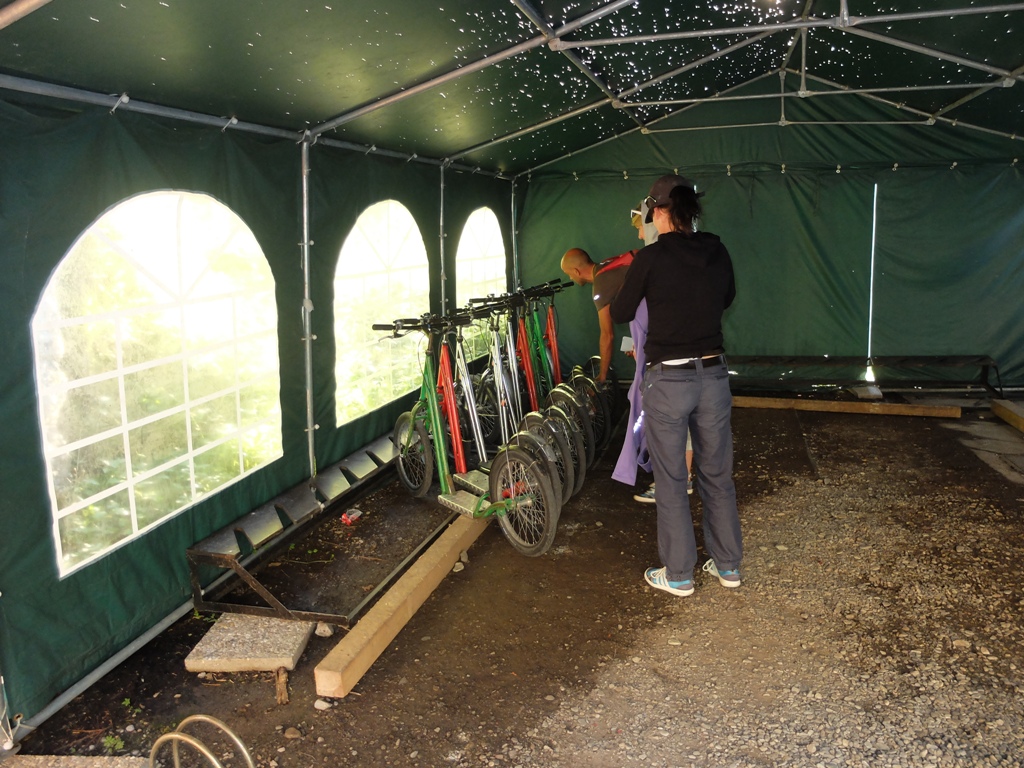 Zusammen mit Guido startete ich um 12.40 Uhr – nicht per pedes, sondern mit dem Fahrrad. Bis zur Käser-Alpe waren etwa 12 Kilometer zurückzulegen. Ich musste nach 9,5 Kilometern mein Fahrrad wieder einmal schieben. Immerhin holte ich unterwegs eine junge Frau ein, der es nicht besser erging. Um 14 Uhr war das erste Etappenziel erreicht: