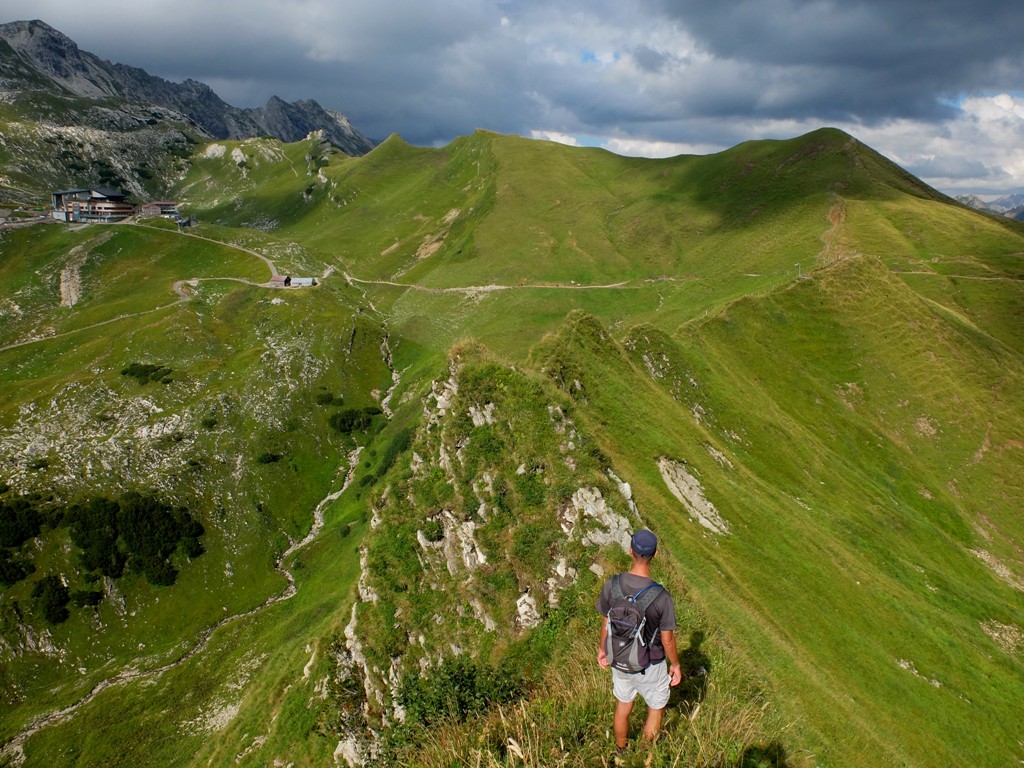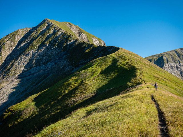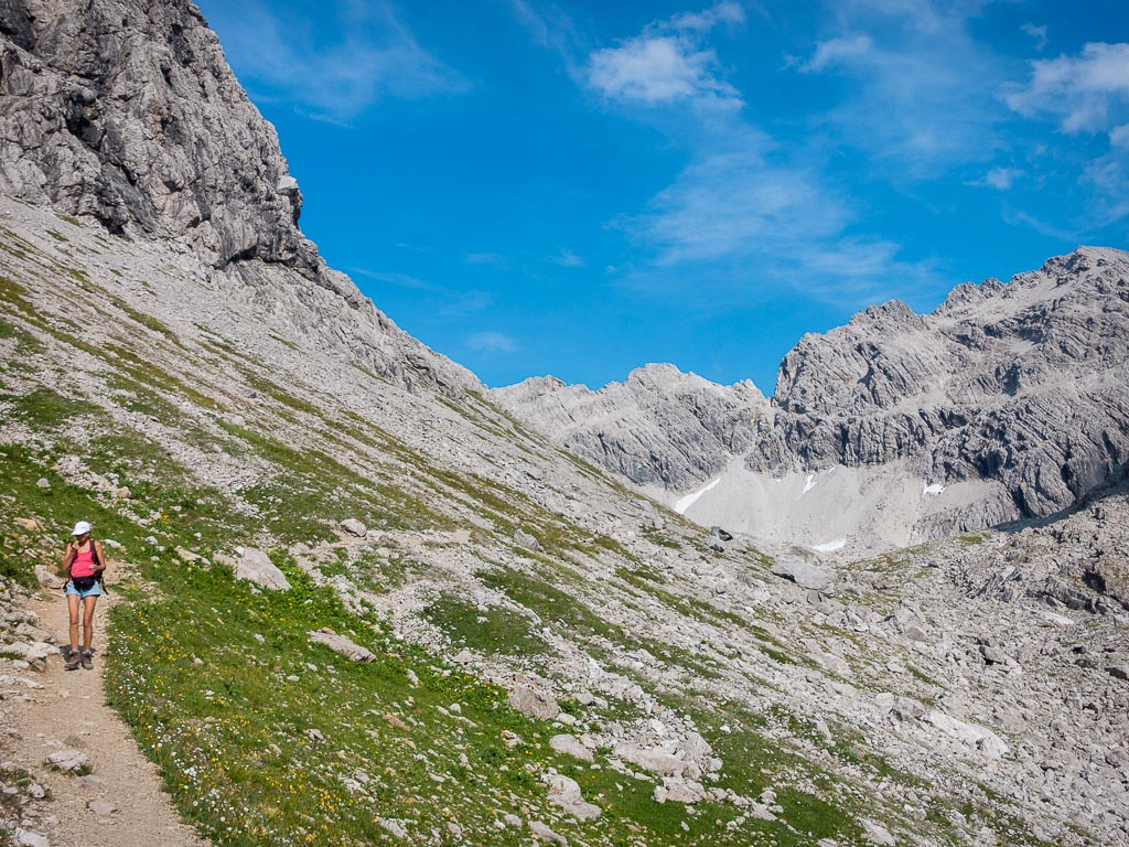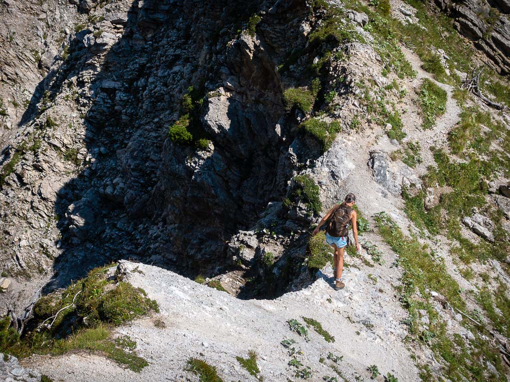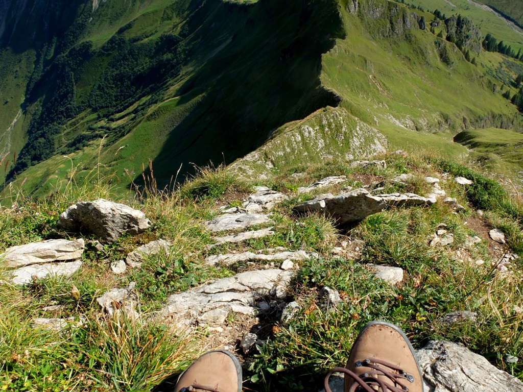 Die steilsten Passagen suchte ich nicht nur mit Händen und Füßen Halt an den Felsen, sondern auch mit dem Hosenboden. Mein Abstieg sah also nicht besonders elegant aus, aber das war mir ziemlich egal. Heil wieder unten ankommen, das war das Ziel und das erreichte ich auf diese Weise. Zurück am Älpelesattel hatten wir noch genug Reserven, um eine kleine Runde über das Speichereck und den Eissee zurück zur Käser-Alpe zu drehen. Auf dem Weg zum Speichereck: