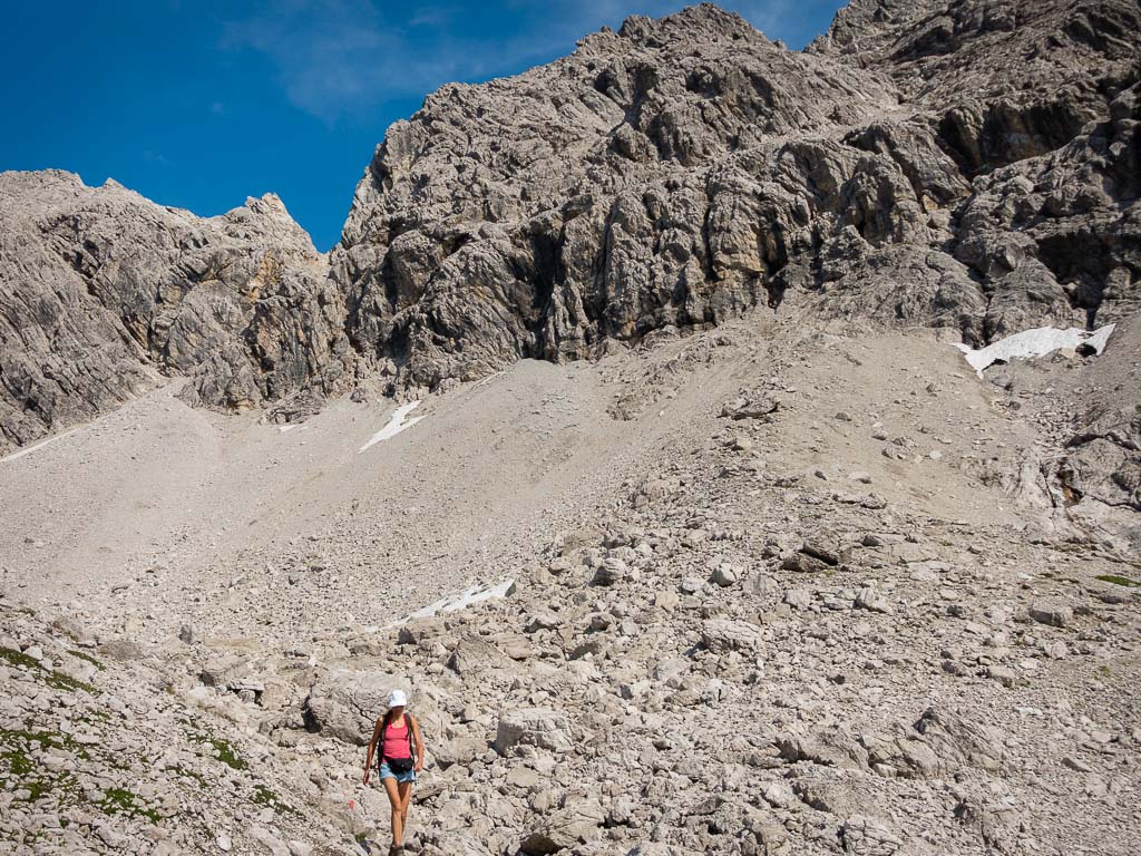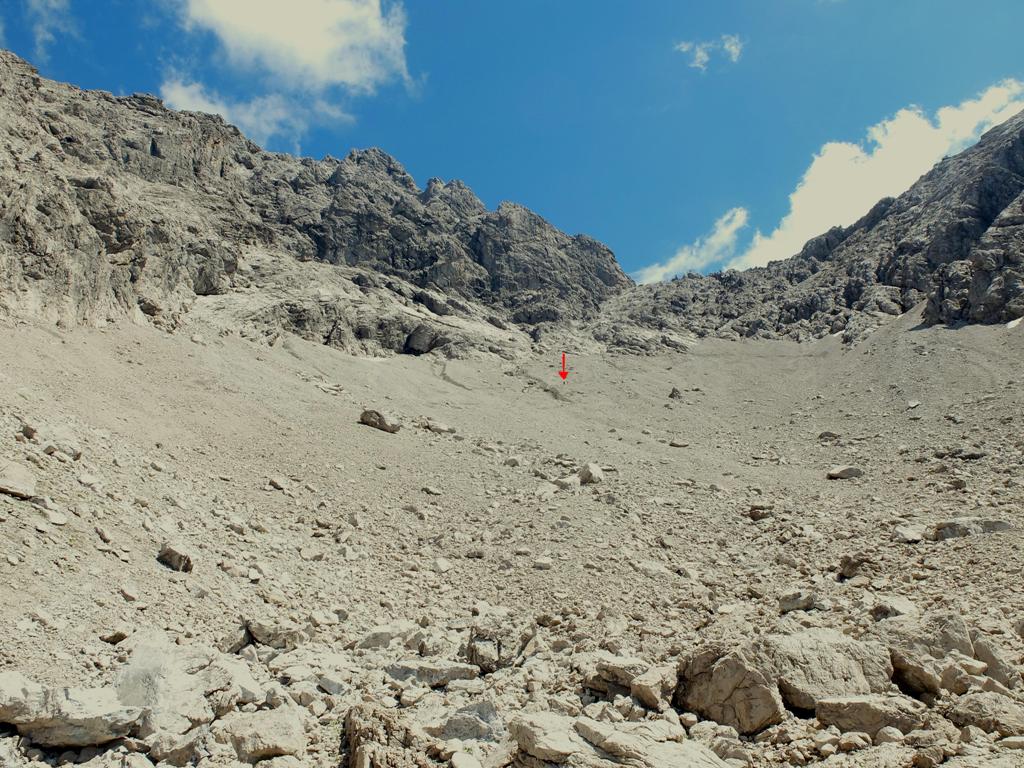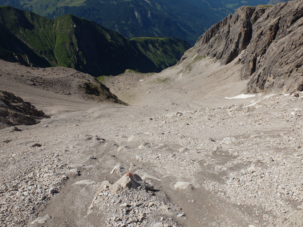 Blick auf eine Geröllhalde des „Kleinen Wilders“, die im weiteren Streckenverlauf im unteren Bereich zu überqueren war:
