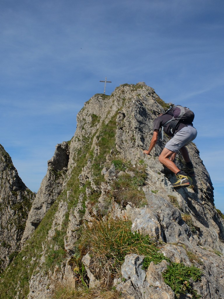 Höher und höher ging es hinauf, bis das Gipfelkreuz zu sehen war: