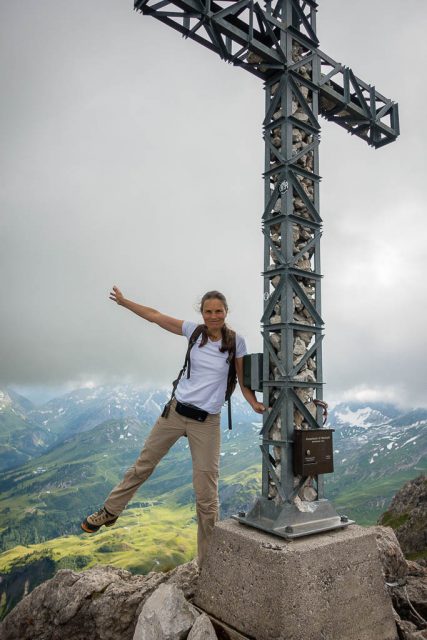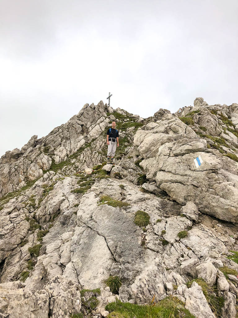 Die Kletterei ist zwar nicht schwierig und das Gelände nicht ausgesetzt, aber Fehler dürfen wir uns hier trotzdem nicht erlauben! Das Gipfelkreuz kommt in Sichtweite: