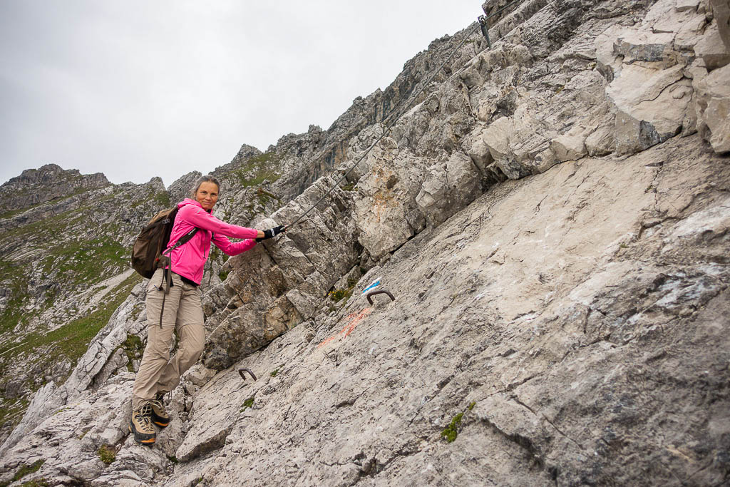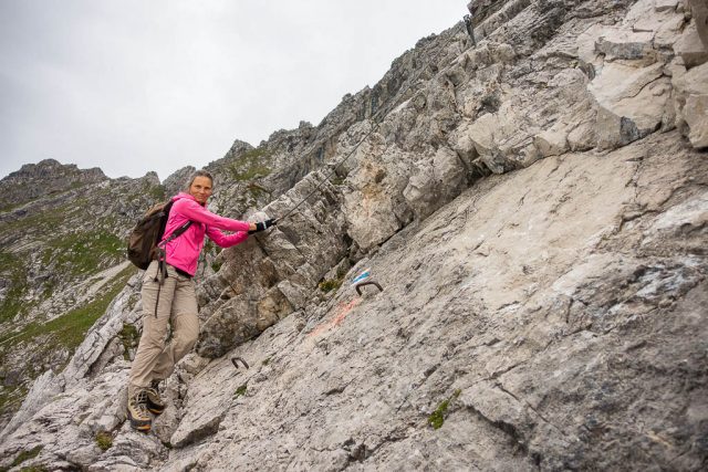 Schwierige Passagen sind mit Drahtseilen gesichert:
