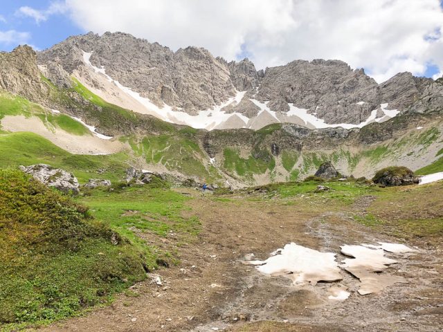 Am Fußes des Karhorns treffen wir auf erste Altschneereste: