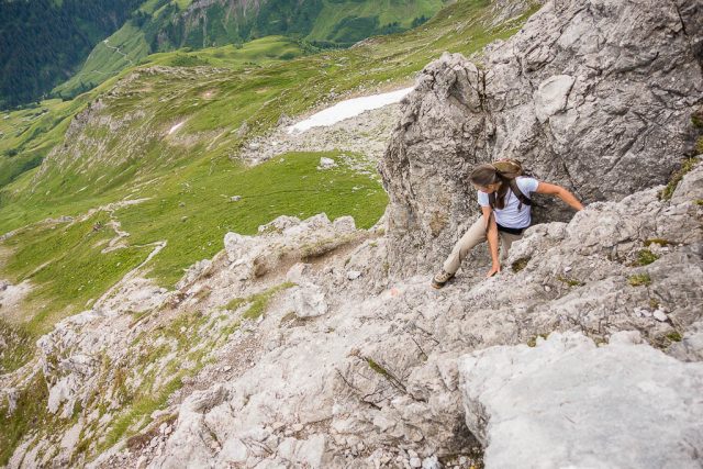 Nach kurzer Rast geht es mit einem mulmigen Gefühl im Bauch wieder bergab. Hochklettern finde ich nämlich einfacher als Hinunterklettern! Aber es geht besser als erwartet und schnell liegt der schwierigste Teil der Strecke hinter uns: