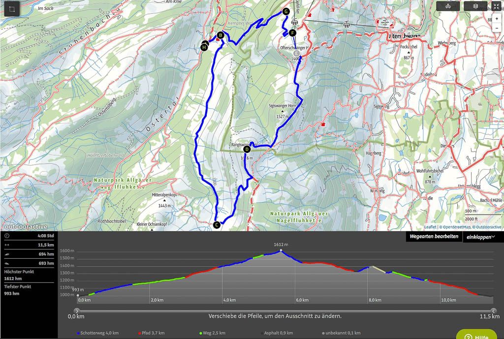 Weitere Bilder, die genaue Streckenbeschreibung und die Daten unserer Tour gibt es auf Guidos Seite: Karhorn (2416m). Unser geplantes Tourenziel, den Widderstein, erreichen wir zwar heute nicht, aber die Umrundung und Besteigung des Karhorns machen die anfängliche Enttäuschung darüber mehr als wett! Meine Mahlzeiten: