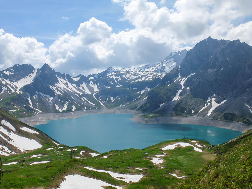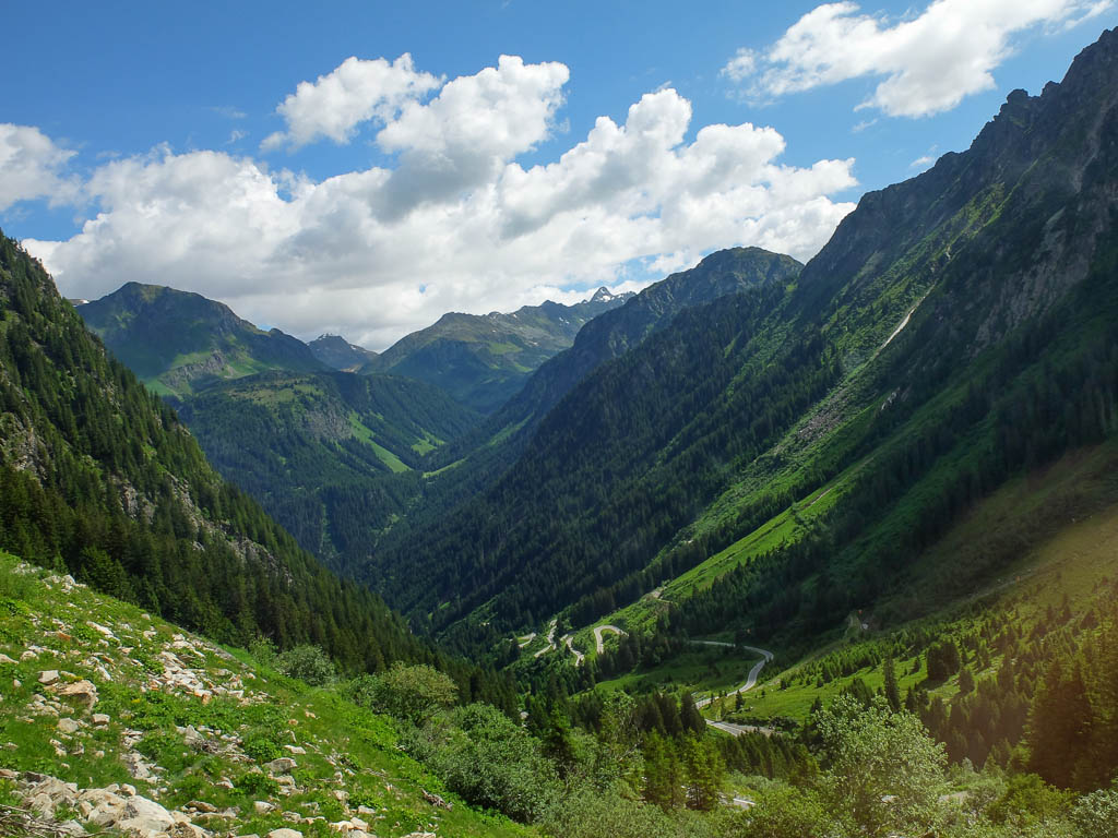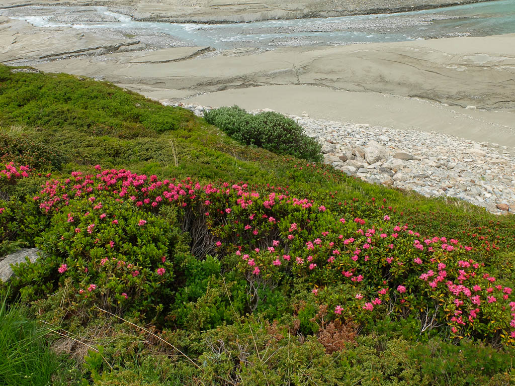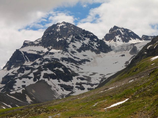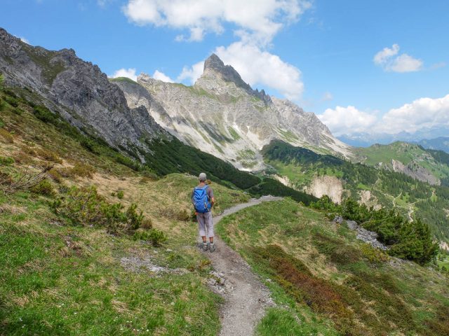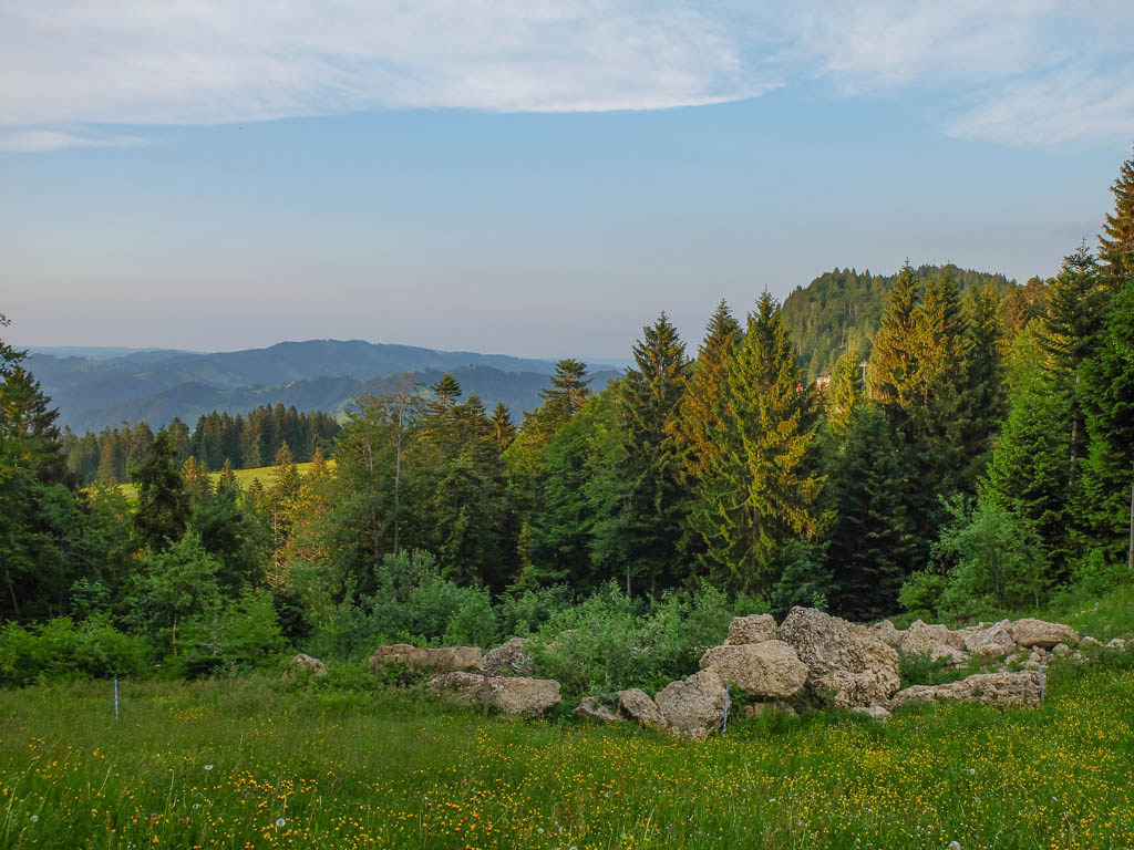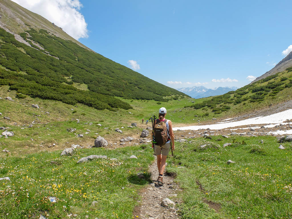 Eigentlich wollen wir das Hörnle überschreiten, aber als wir sehen, wie der Weg auf der anderen Seite hinuntergeht bzw. wieder hinaufgeht, wird uns doch etwas mulmig zumute:
