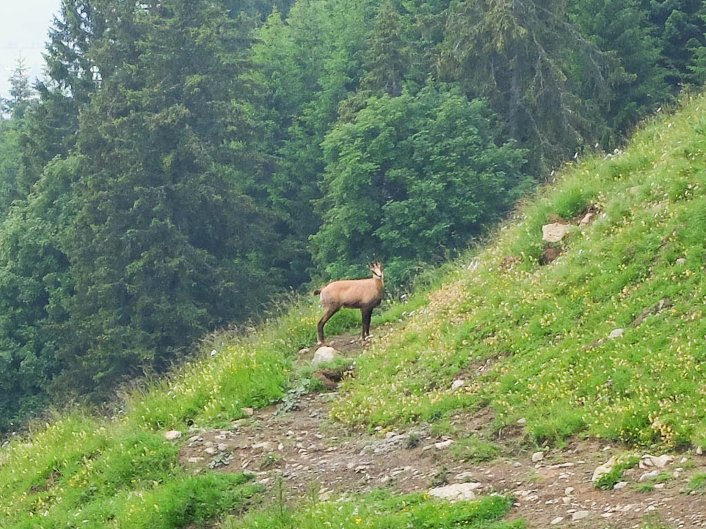 Begegnung mit einer Gämse in der Nähe der Zweifelgehren-Alpe: