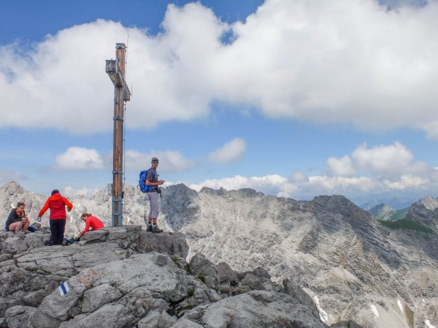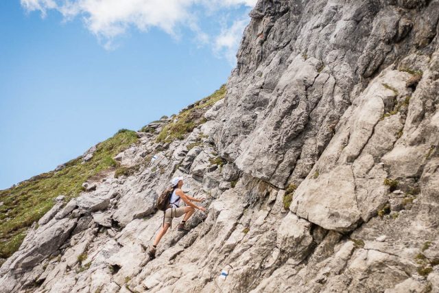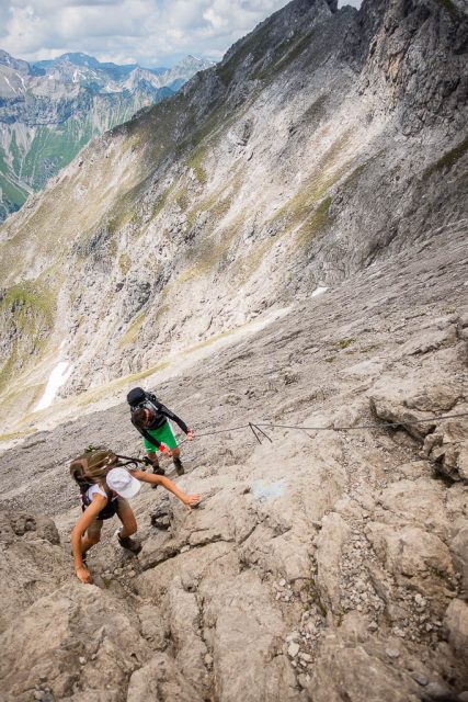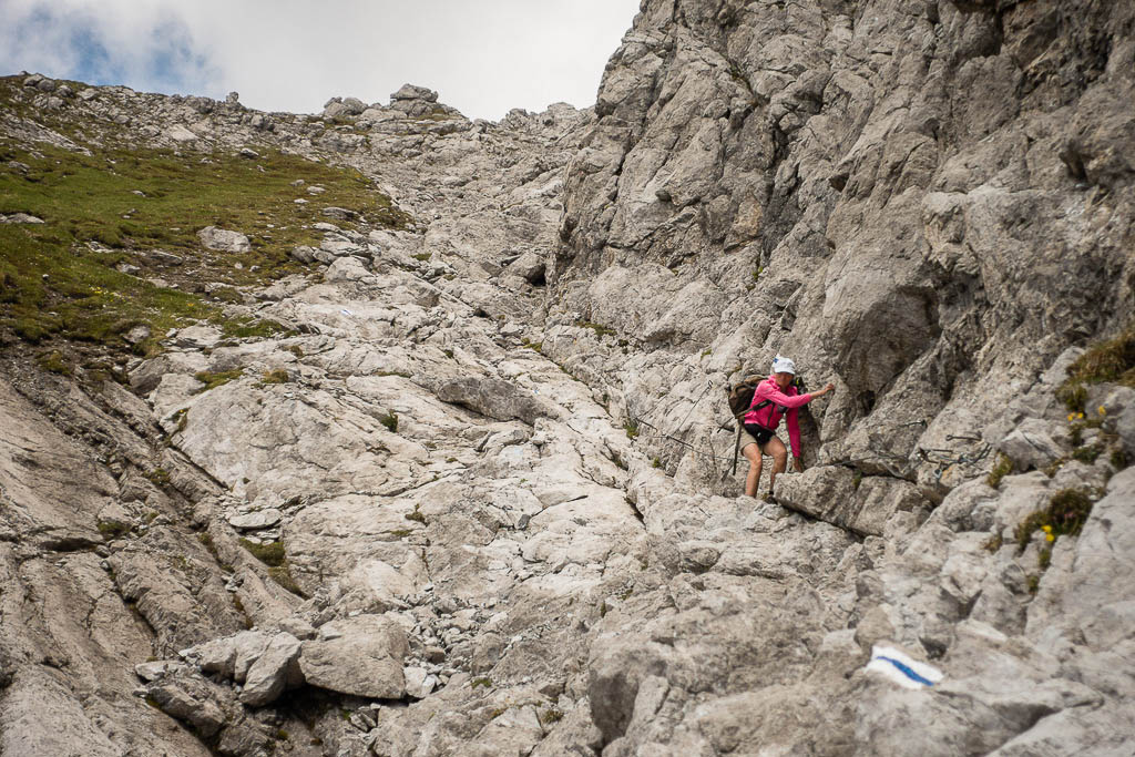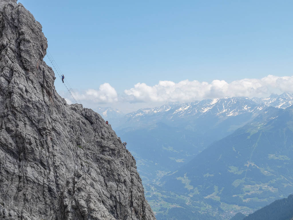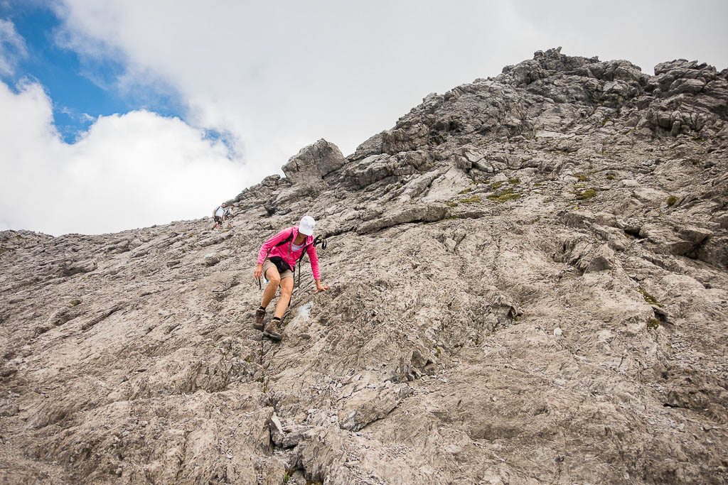 Von diesem Gipfel aus geht es nicht an Drahtseilen, sondern an Ketten weiter: