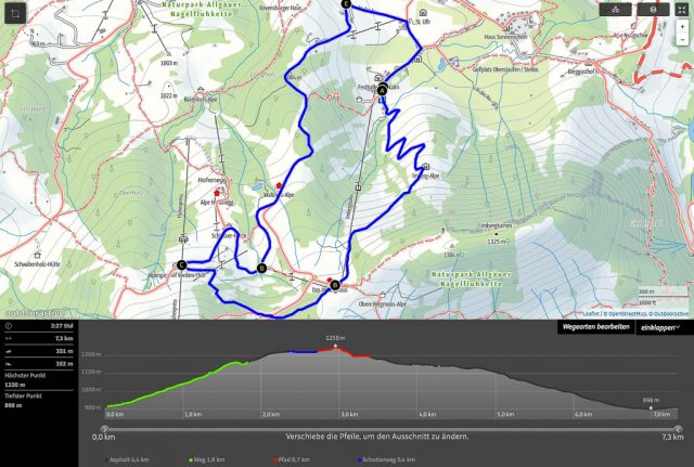 Die Daten der Tour: Dauer 4 Stunden und 50 Minuten (mit kurzen Pausen), Länge 12 Kilometer und 1200 Höhenmeter. Ab heute sehe ich den Grünten mit ganz anderen Augen: Es ist wunderschön, hier wandern zu gehen! Meine Mahlzeiten: