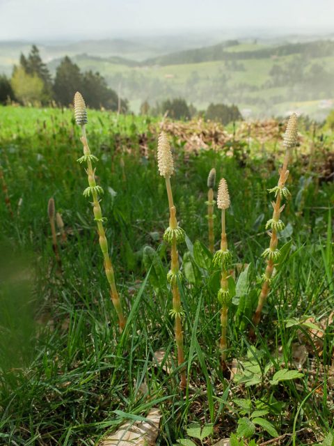 Bei der 100. höre ich mit dem Zählen auf! Ebenfalls in großer Zahl mit dabei sind „Köpfe“ des Ackerschachtelhalms: