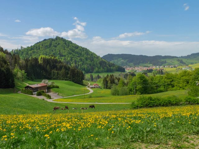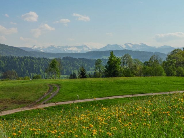 Auf der Höhe mit Blick auf Nagelfluhkette und Alpstein: