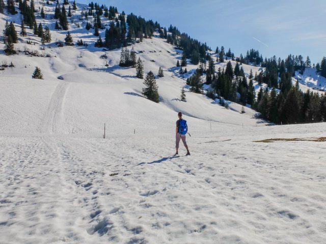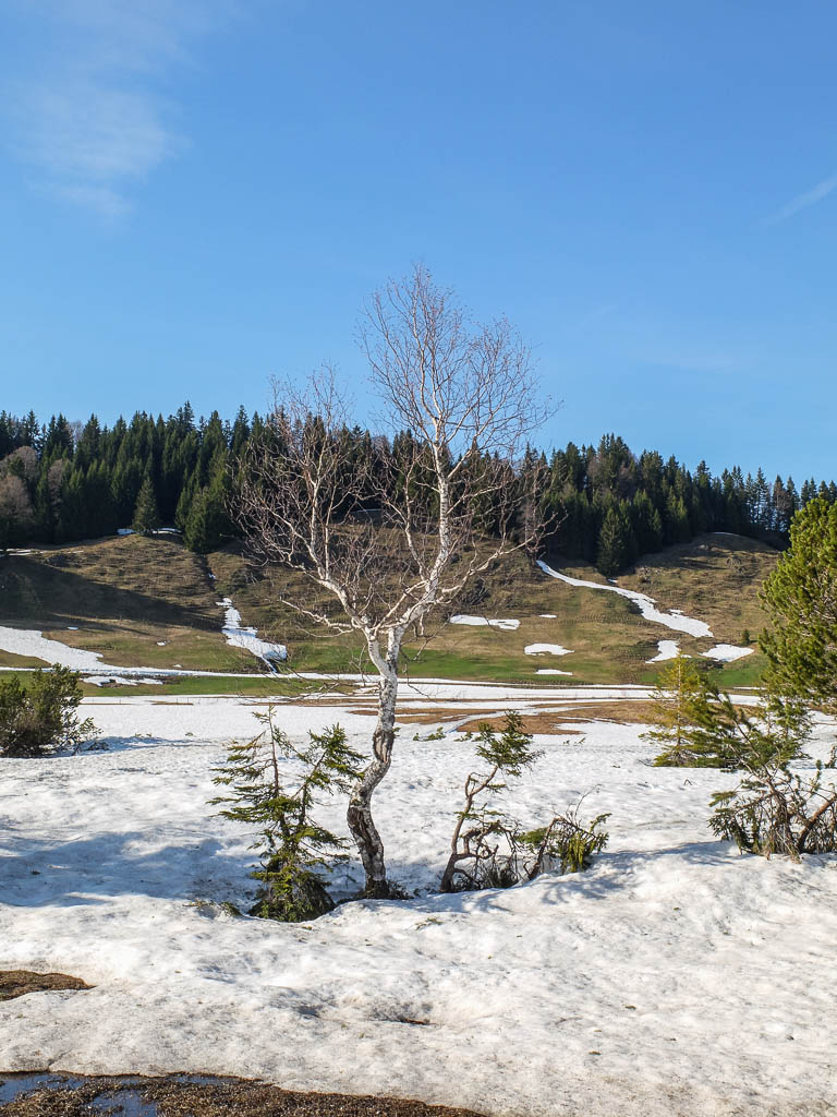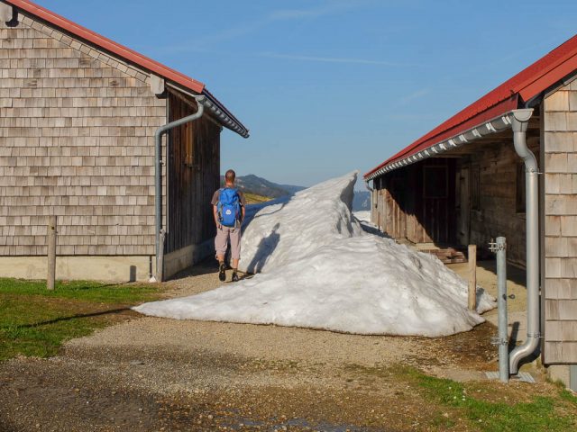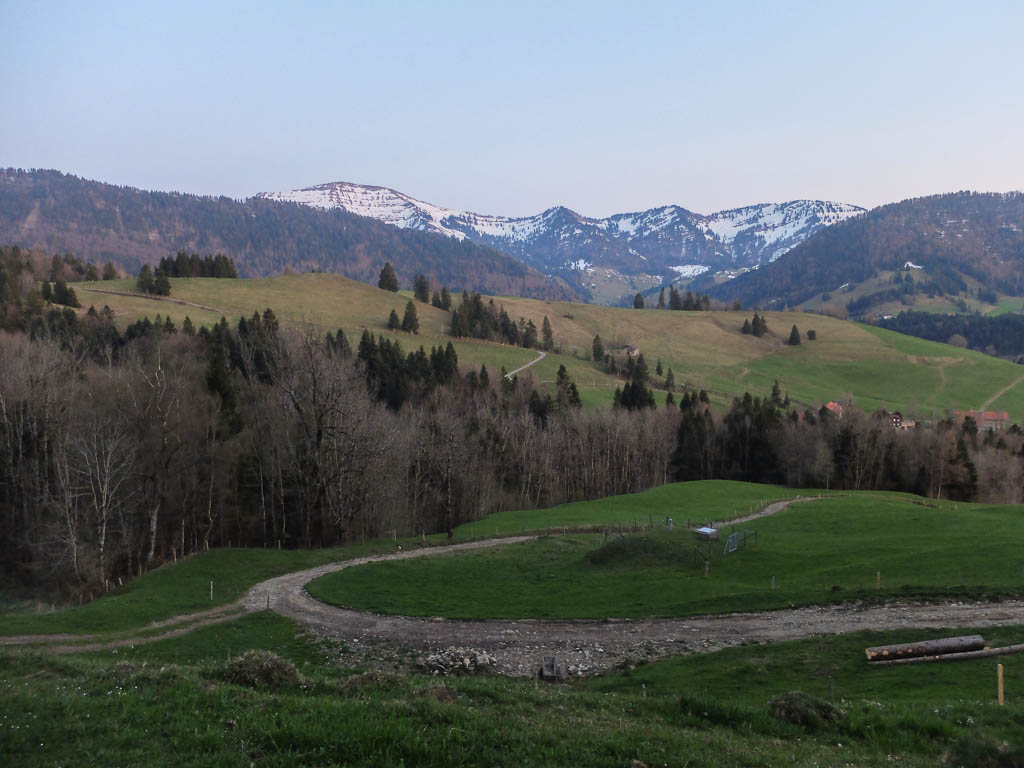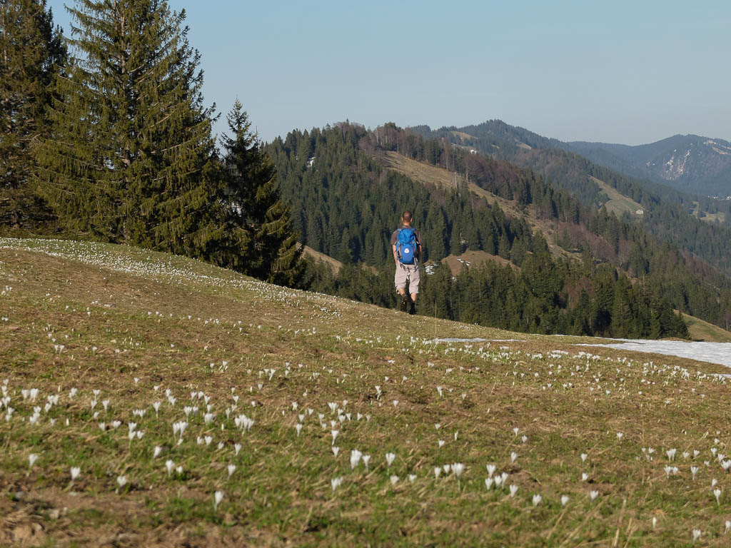 Wildkräuter gibt es heute keine. Während der Wanderung esse ich nur ein paar Halme Schnittlauch, die ich an der Remmelegg-Alpe finde: