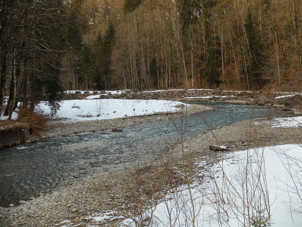 Die letzten Kilometer zurück nach Oberstdorf geht es entlang der Trettach, eines Gebirgsbaches, dessen klares, blaugetöntes Wasser mich immer wieder fasziniert:
