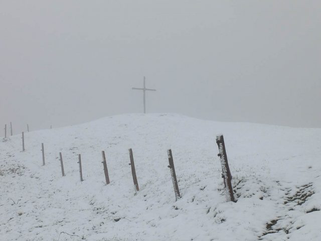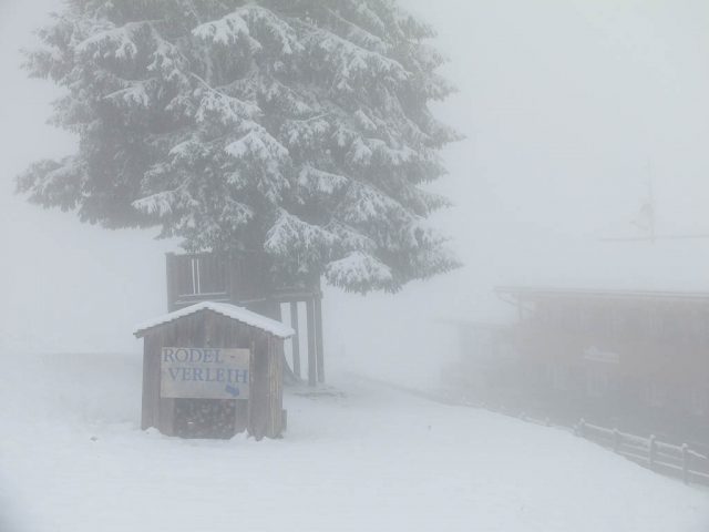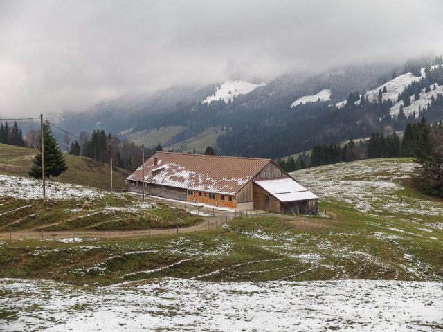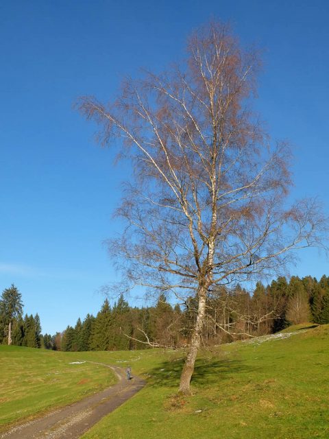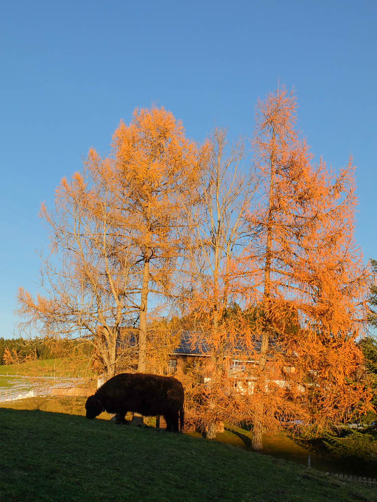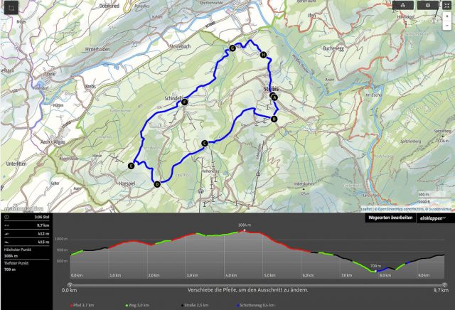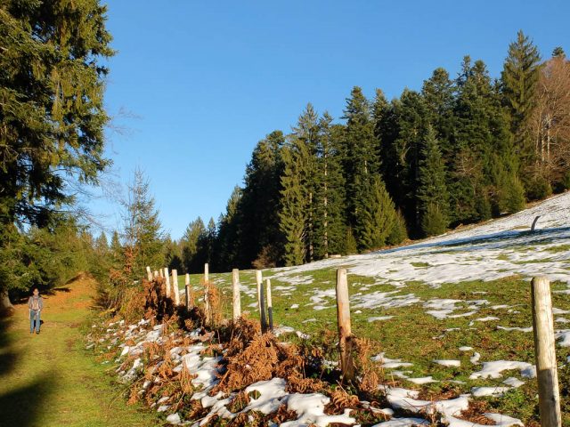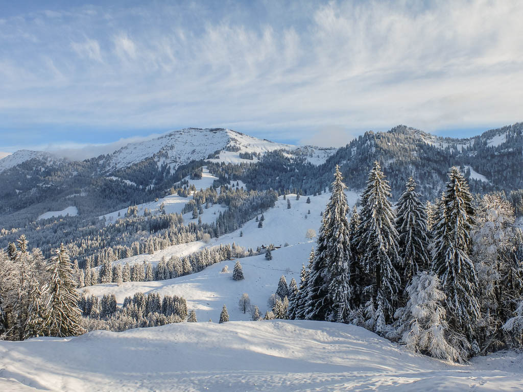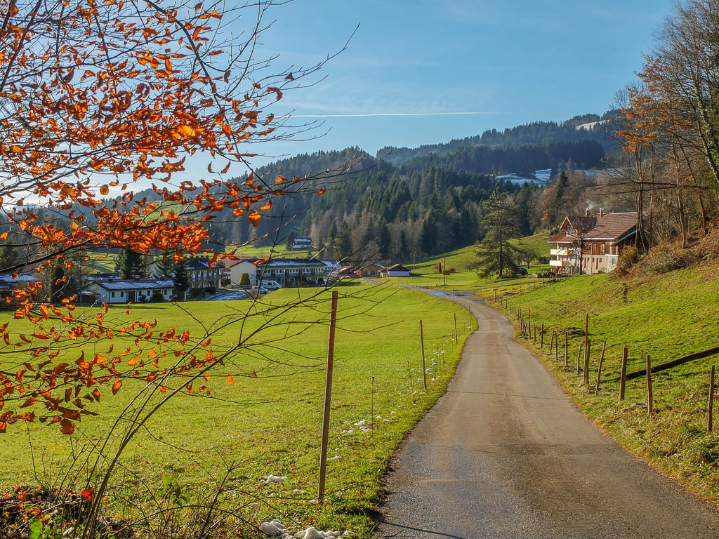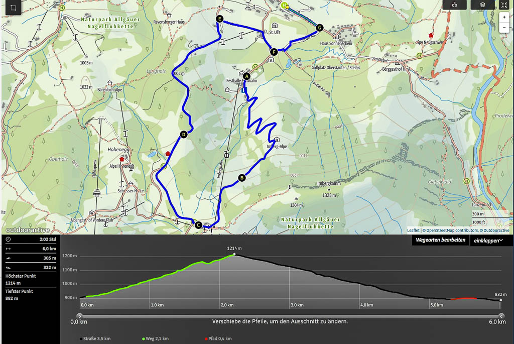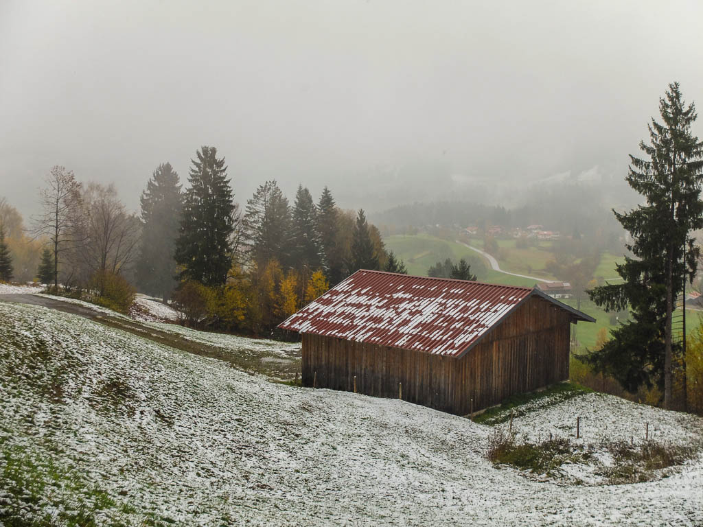 Unsere Skitour am Sonntag war wohl die erste und gleichzeitig die letzte für die nächste Zeit. Bei Temperaturen um die 14 °C und strahlendem Sonnenschein sind die Hänge am Imberg mittlerweile nicht mehr befahrbar. Statt mit den Skiern sind wir heute daher wieder einmal mit den Wanderschuhen unterwegs: Wir laufen mit der Sonne im Gesicht nach Eibele an der österreichischen Grenze und mit der Sonne im Rücken über Laufenegg sowie Berg hinauf zum Kapf. Dort genießen wir den Sonnenuntergang, dann geht es zurück nach Hause. Der Tourenplaner von outdooractive.com gibt für die Strecke eine Länge von 11,6 Kilometern an: