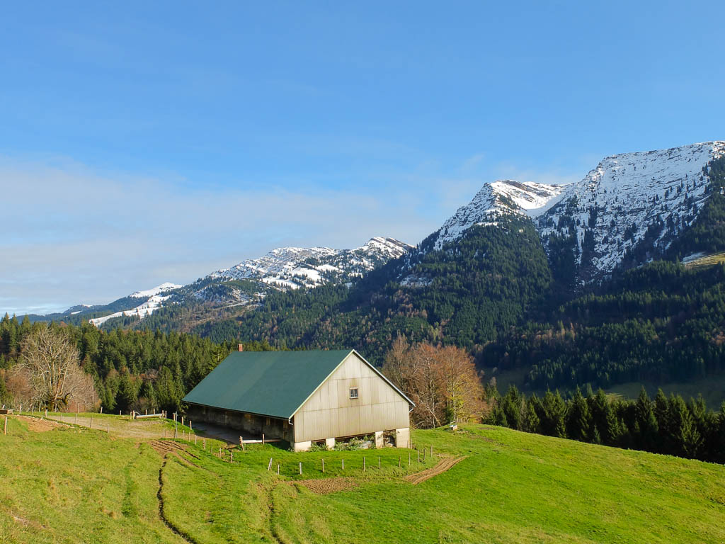 Ein Blick auf die Allgäuer Hochalpen und die Brunnenauscharte: