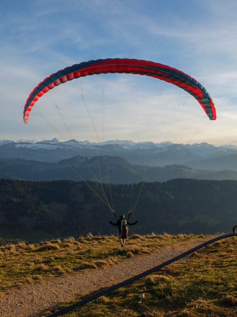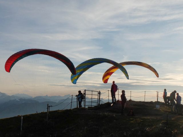 Gleitschirmflieger am Gipfel des Hochgrats: