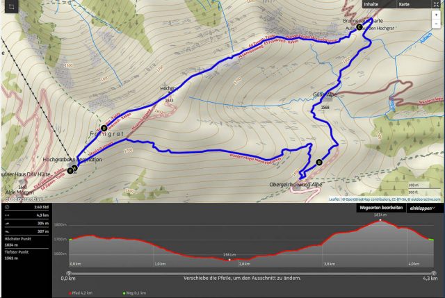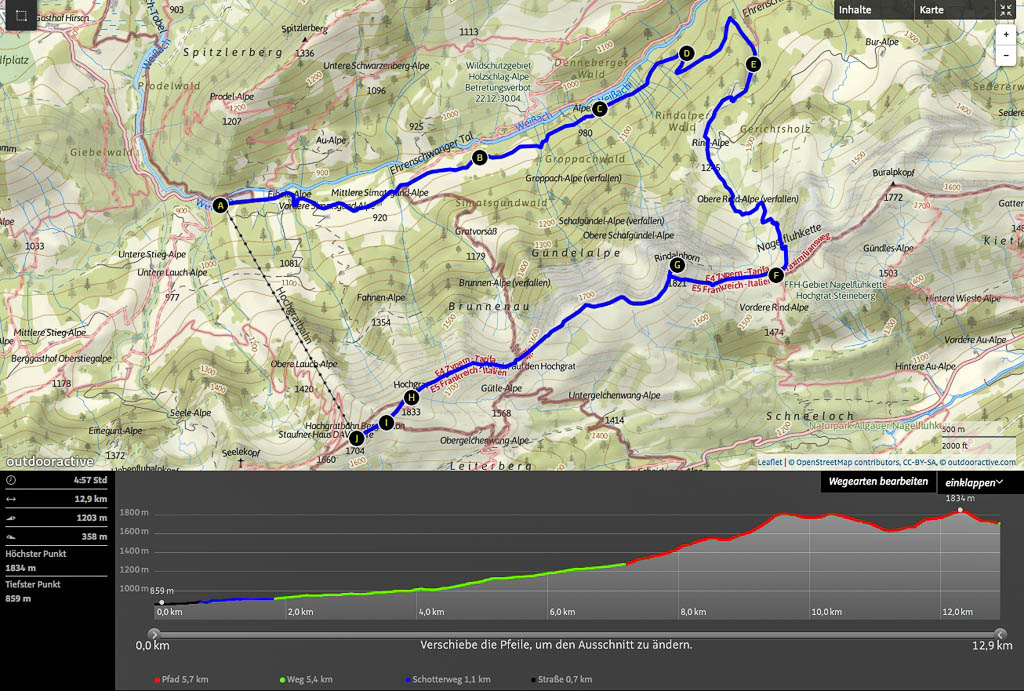 Am Nachmittag genießen Guido und ich noch einmal Sonnenschein und milde Temperaturen. Morgen soll ja Tief „Jürgen“ für Abkühlung und Regen sorgen. Die kleine Runde, die wir am Hochgrat drehen: