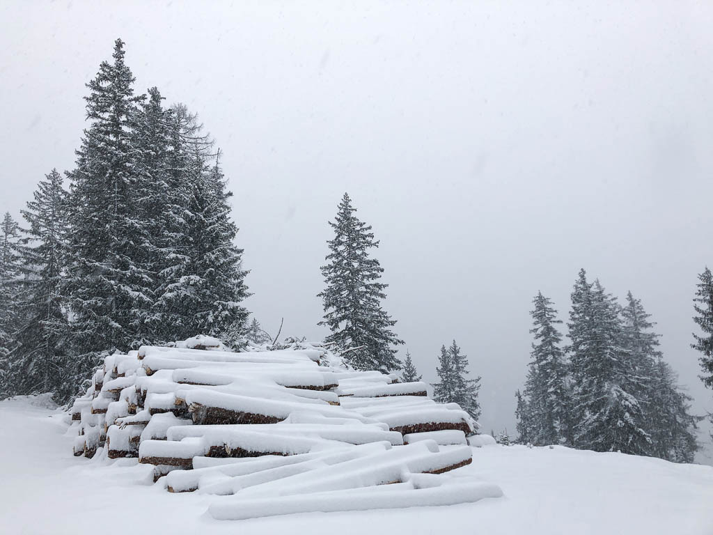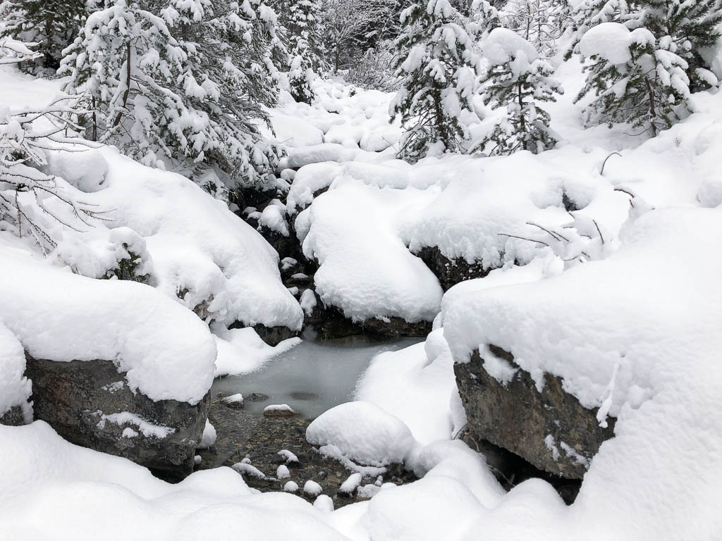 Um kurz vor Mitternacht brechen Guido und ich zu einem Spaziergang auf. Da es tagsüber weitergeschneit hat, sind die Straßen immer noch schneebedeckt und die Bäume biegen sich unter der Last des Schnees. Aber die Wolkendecke hat sich im Laufe der letzten Stunden geöffnet und so glitzern jetzt tausend Sterne über uns.